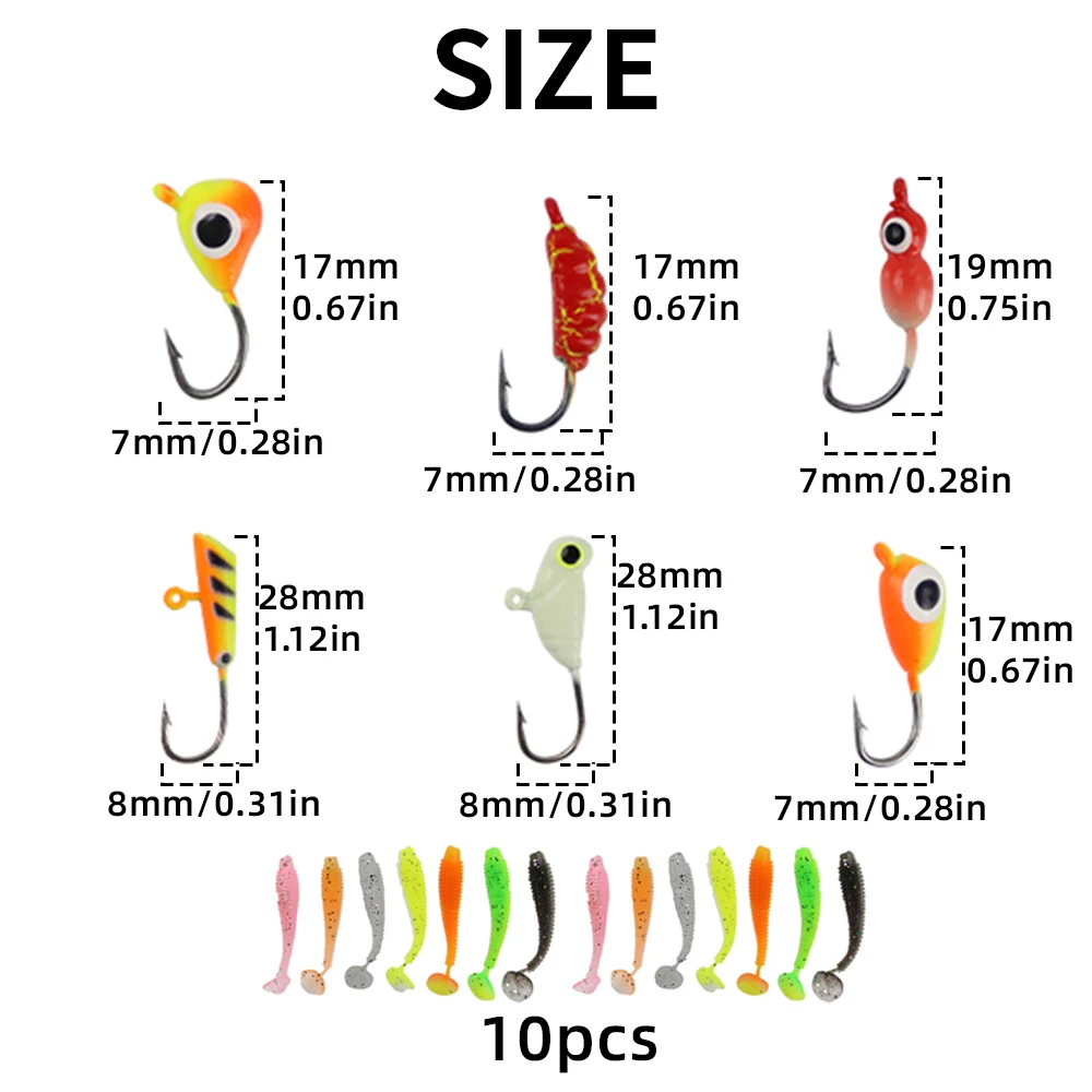 4. Ice Fishing Jigs Lures 14PCS+Threaded * 14+Line Cut Pliers * 1+box*1