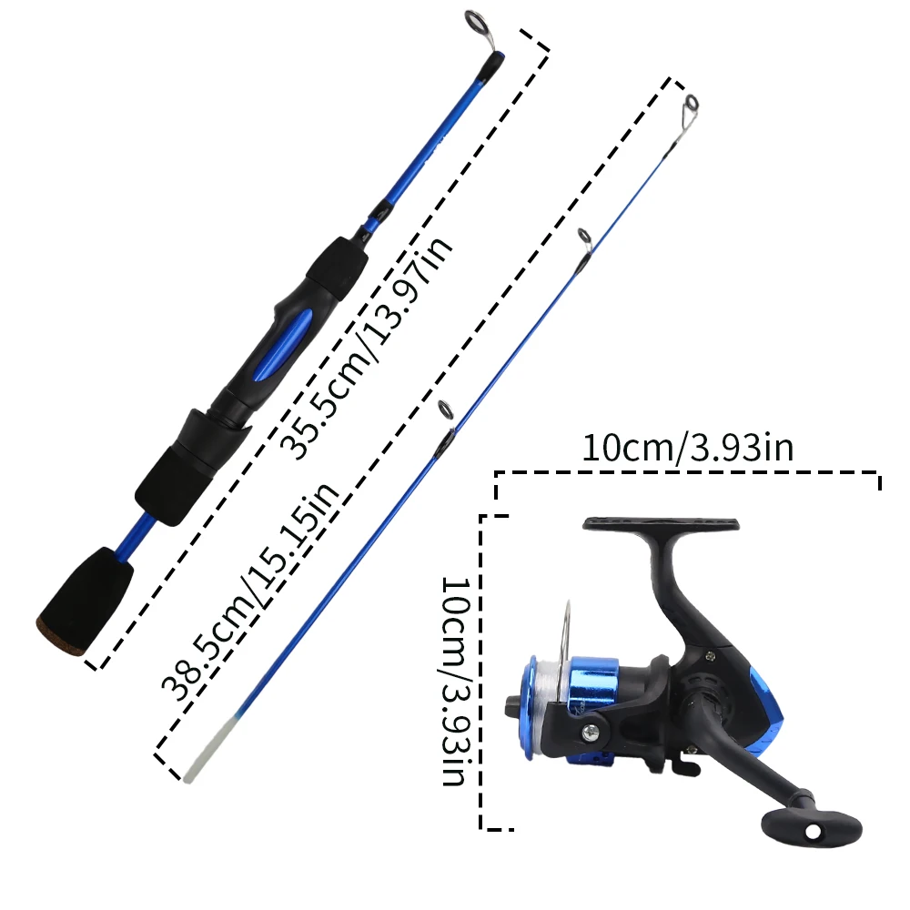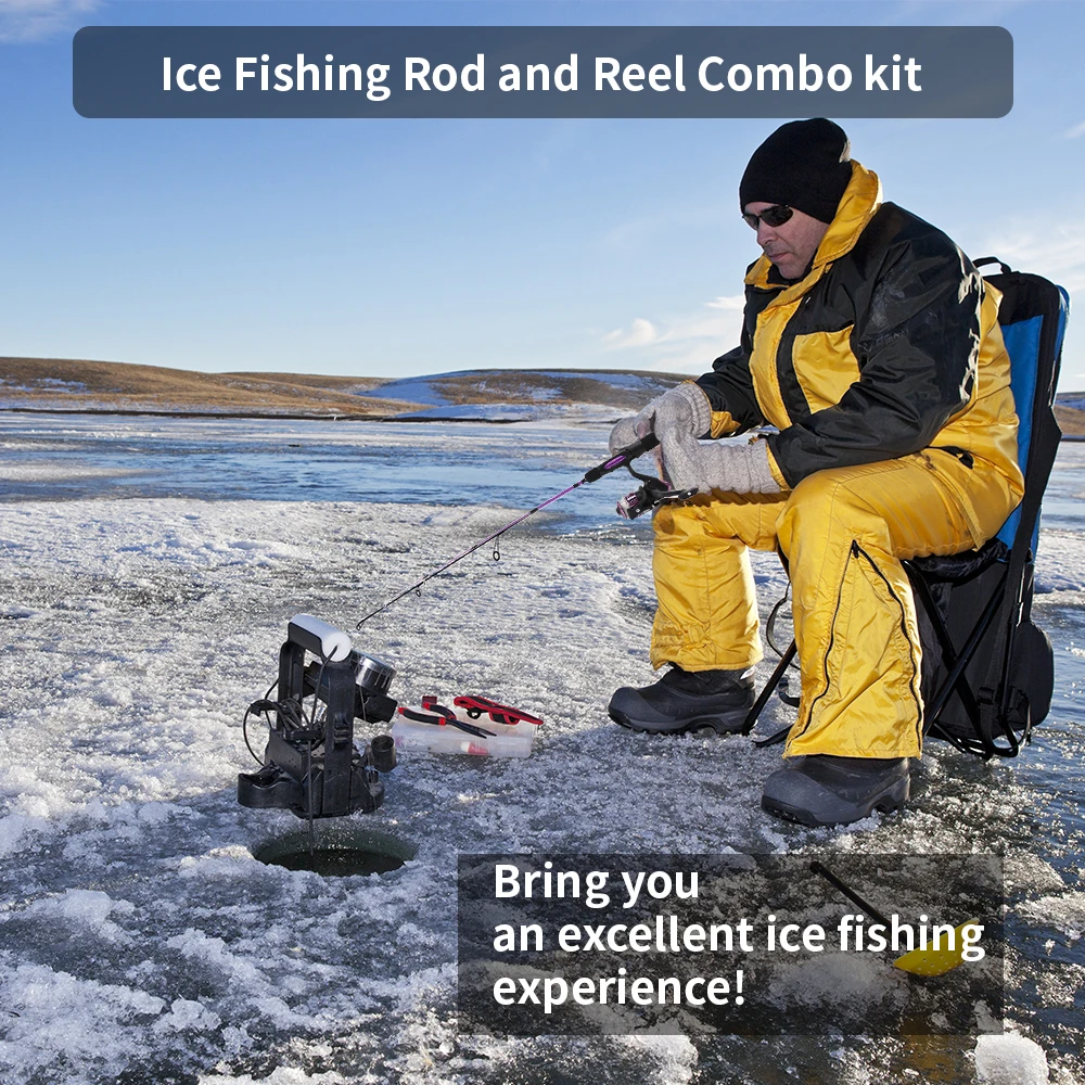 1. Ice Fishing Rod Reel Combo Complete Set: This ice fishing combo complete set includes everything you need for a successful ice fishing experience. The package contains ice fishing rod, a spinning reel, soft lures and ice fishing jigs. Will greatly improve your ice fishing experience and also increase your chances for success.