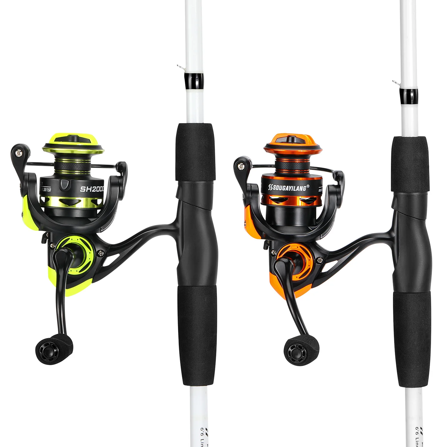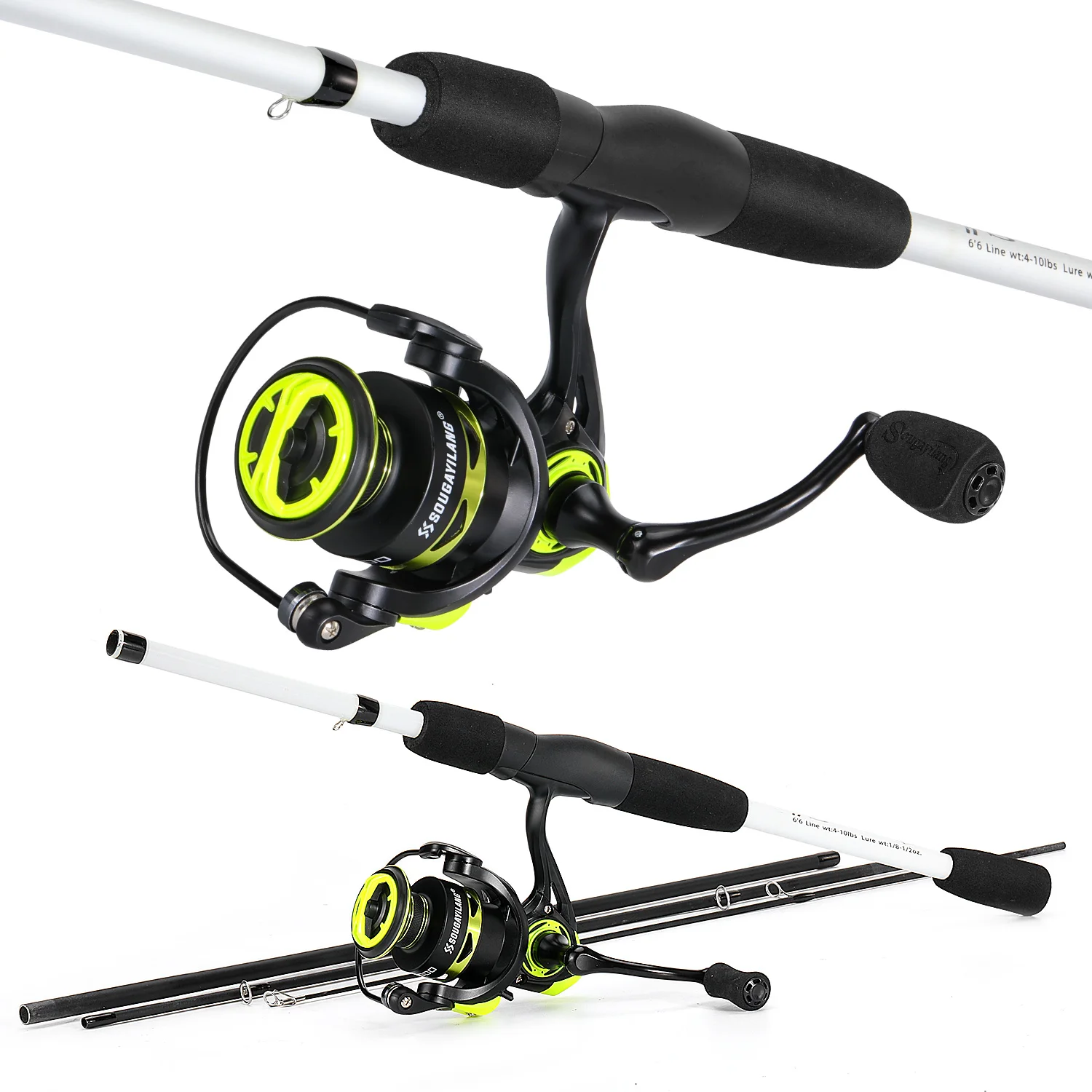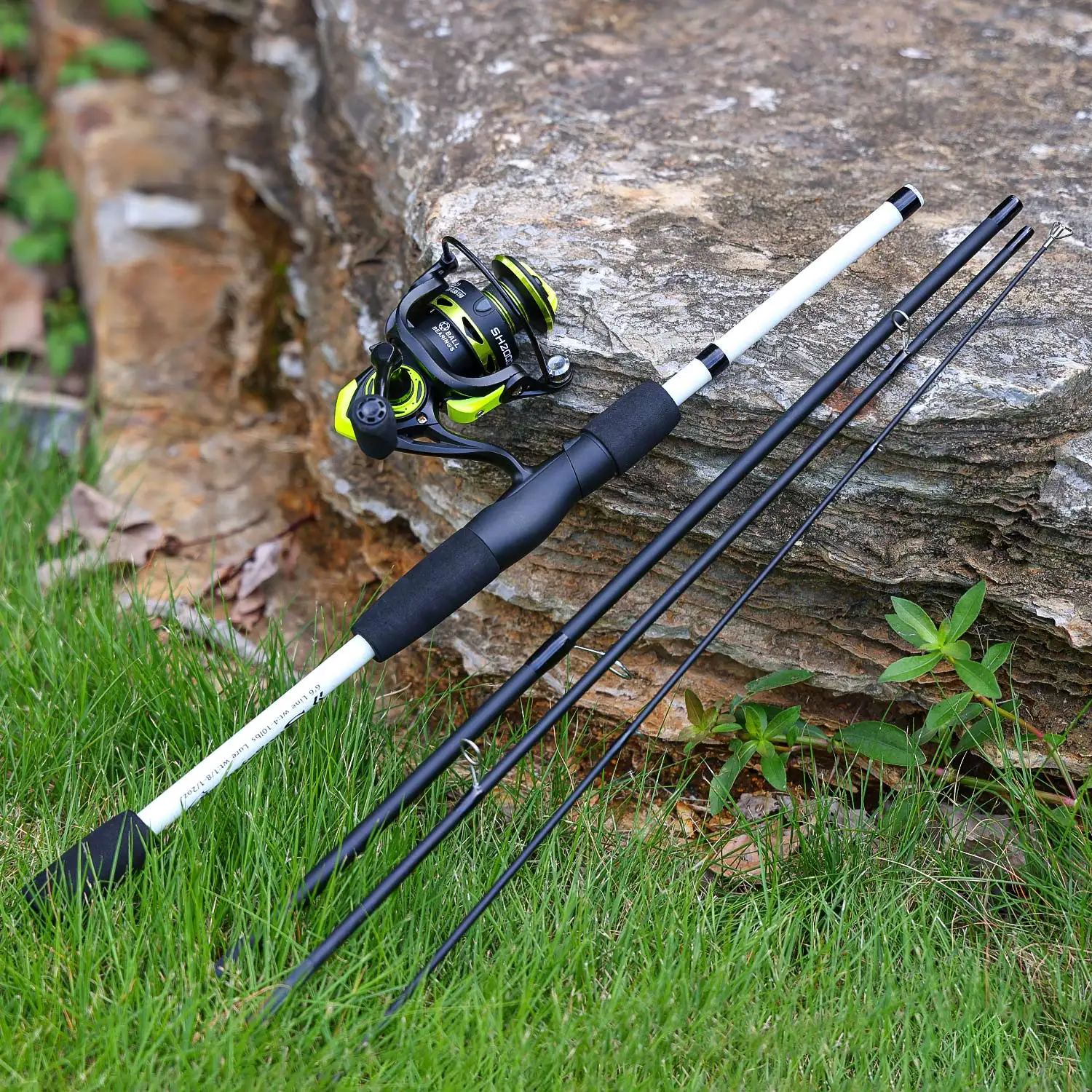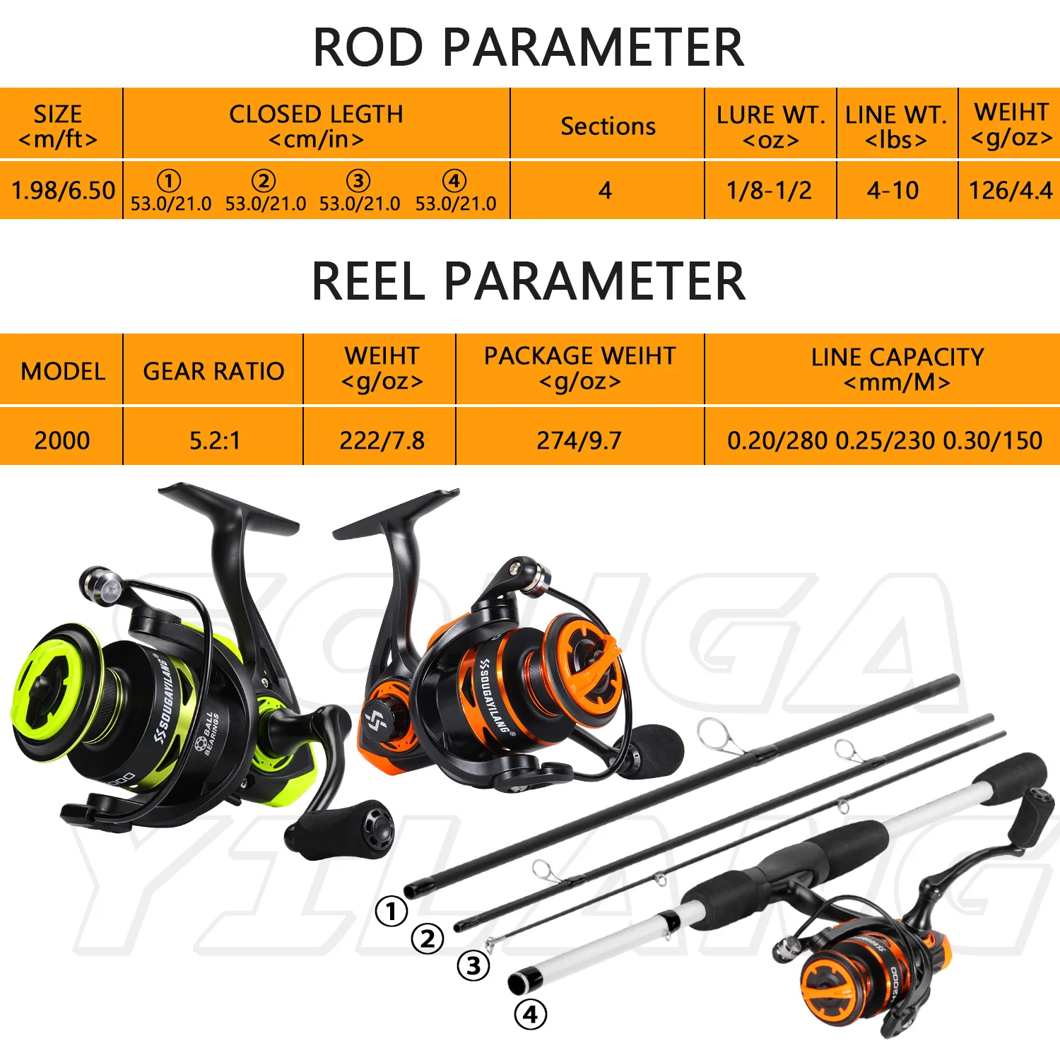 Combinación de carrete giratorio y caña Sougayilang, caña de pescar de fibra de carbono de 1,98m, 4 secciones, juego de carrete giratorio 5,2:1 con hilo de pescar gratis