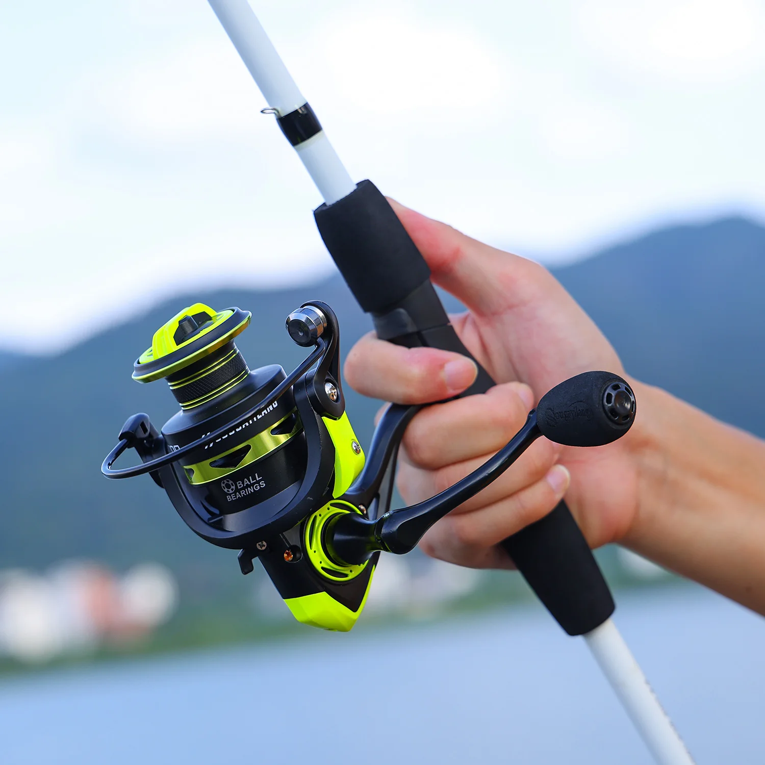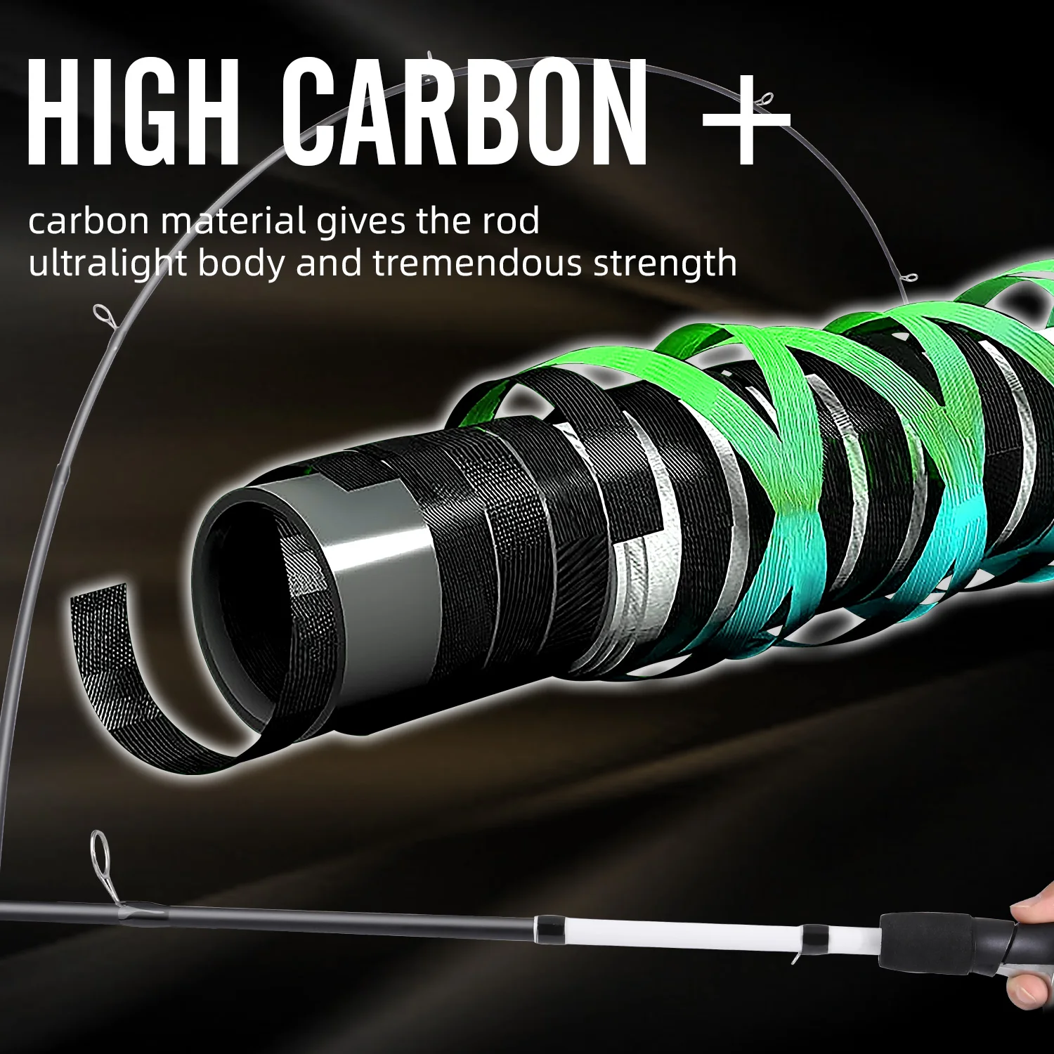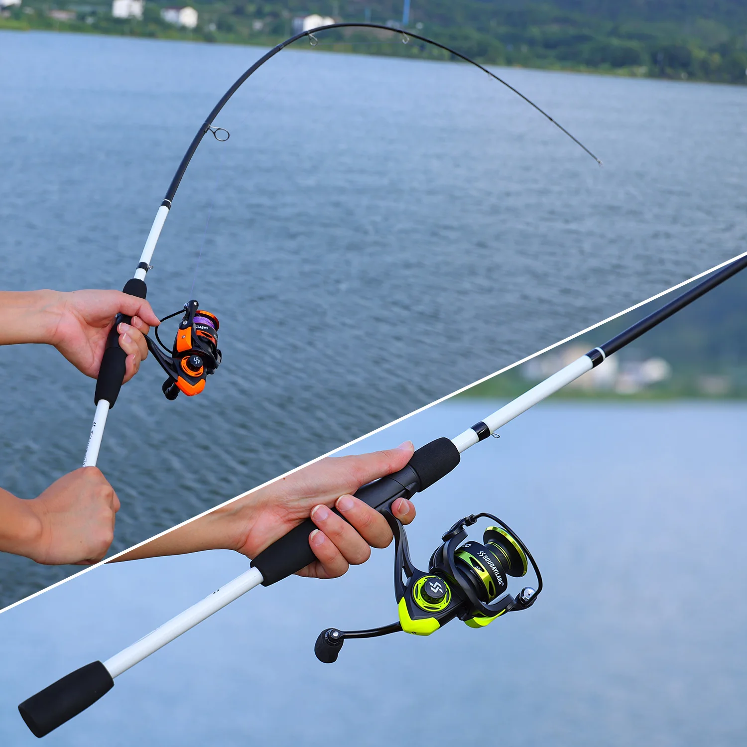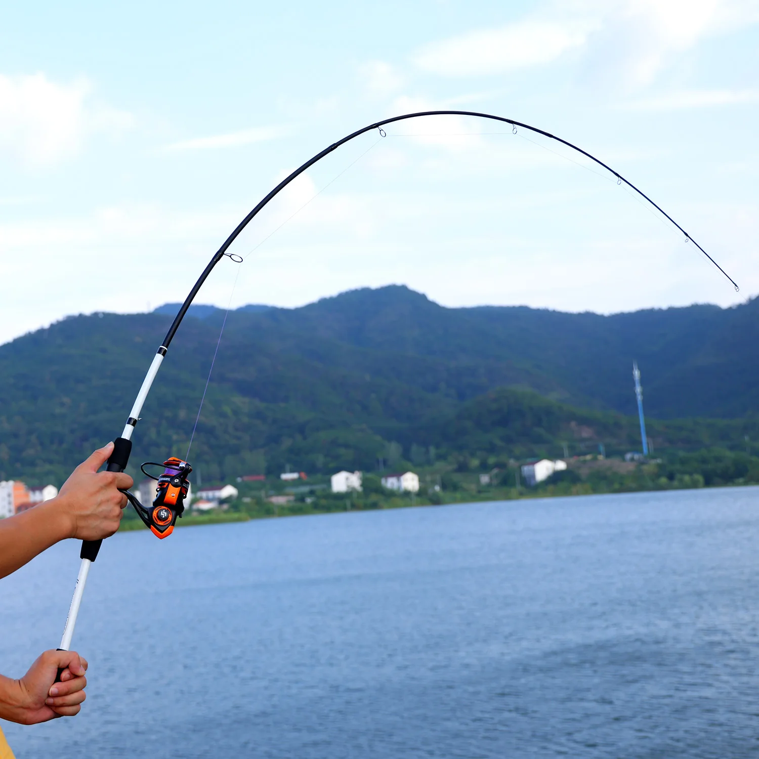 Combinación de carrete giratorio y caña Sougayilang, caña de pescar de fibra de carbono de 1,98m, 4 secciones, juego de carrete giratorio 5,2:1 con hilo de pescar gratis