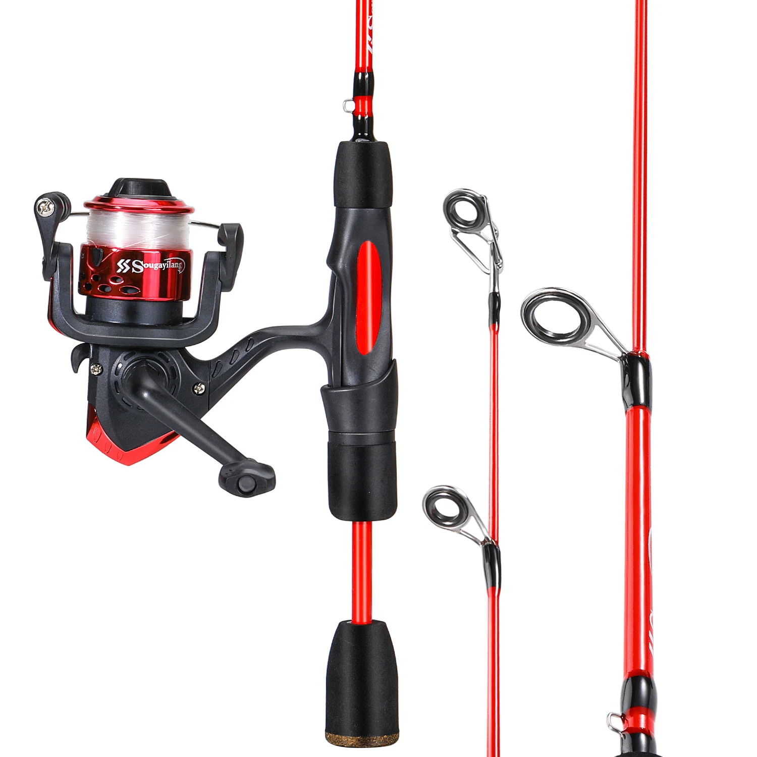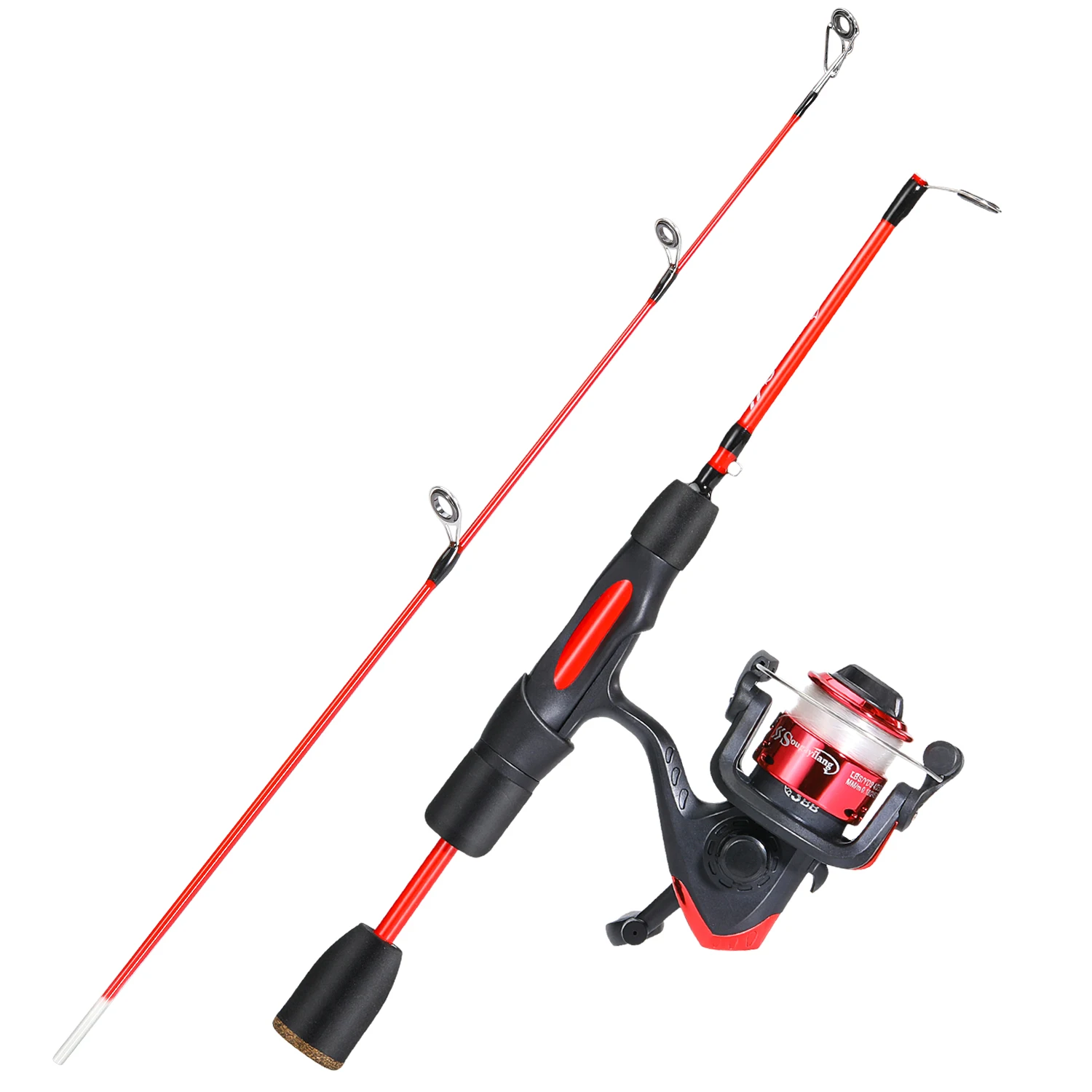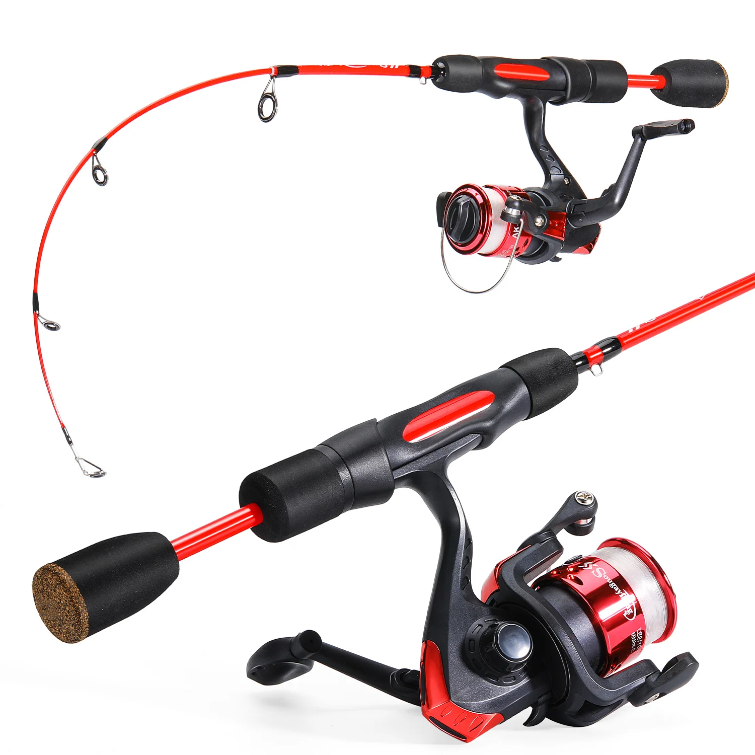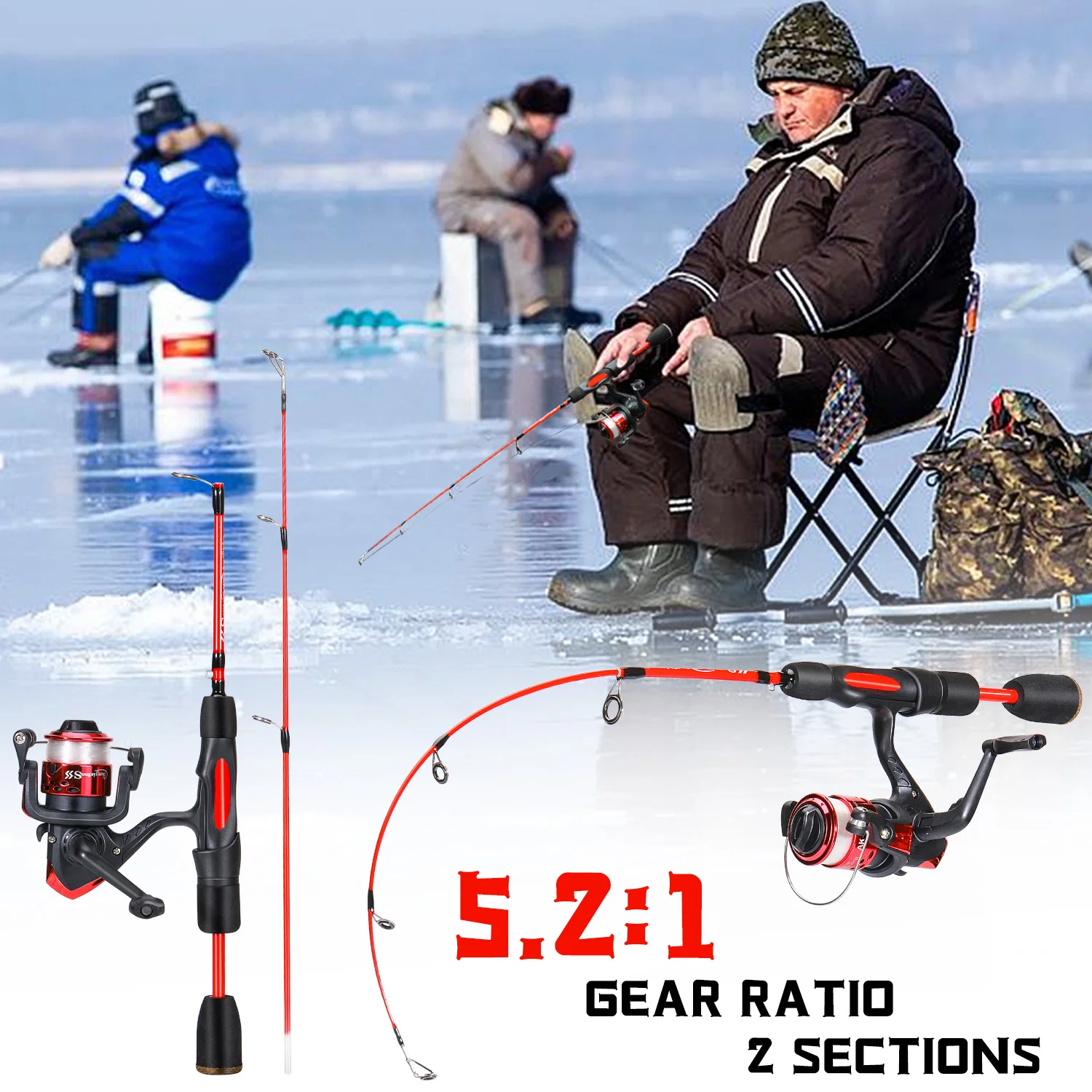 Sougayilang Combo de pesca en hielo 68 cm 2 secciones EVA mango caña de pescar en hielo con carrete de pesca 5,2:1 3BB Drag máximo 5 kg Kit de pesca