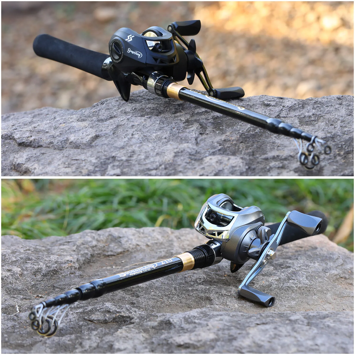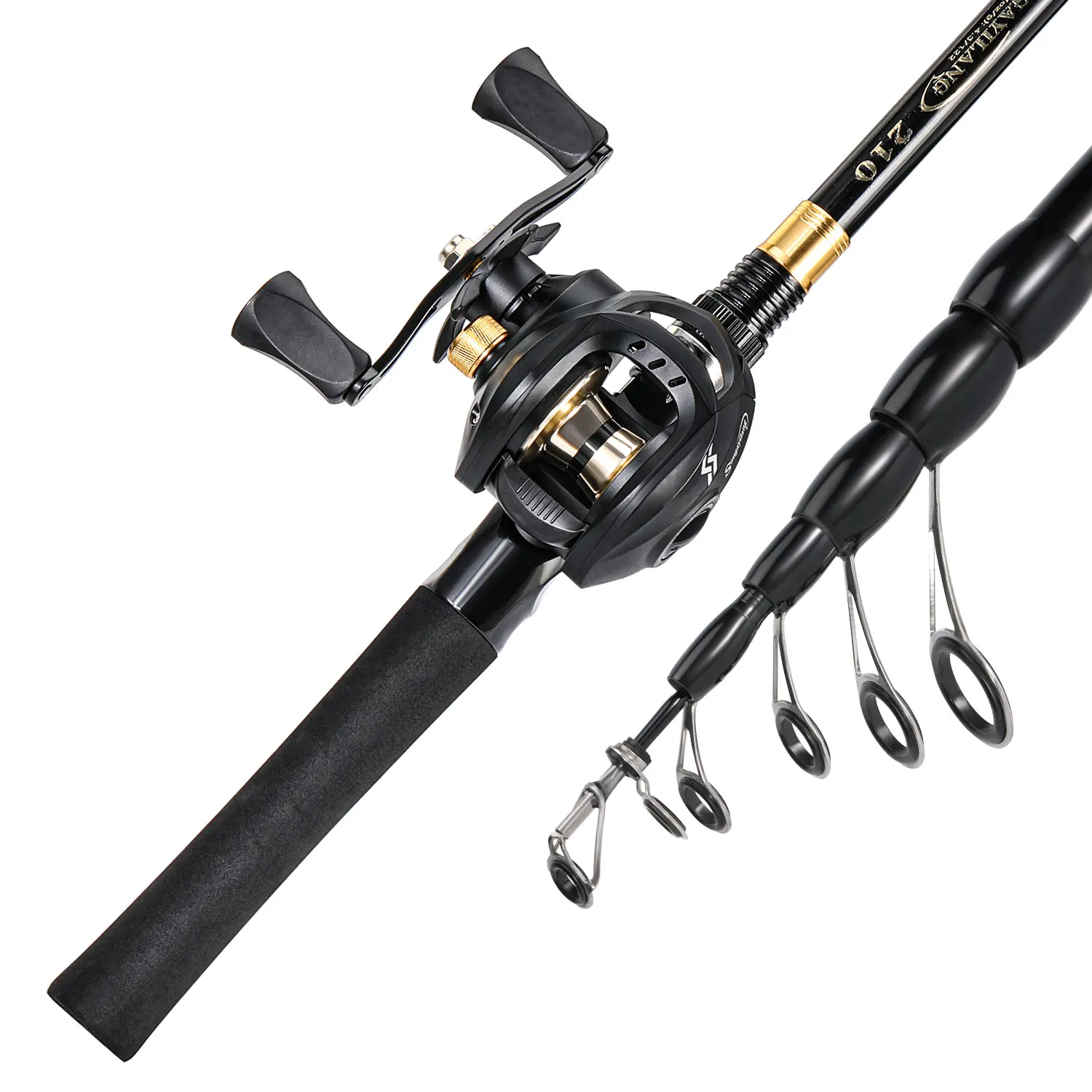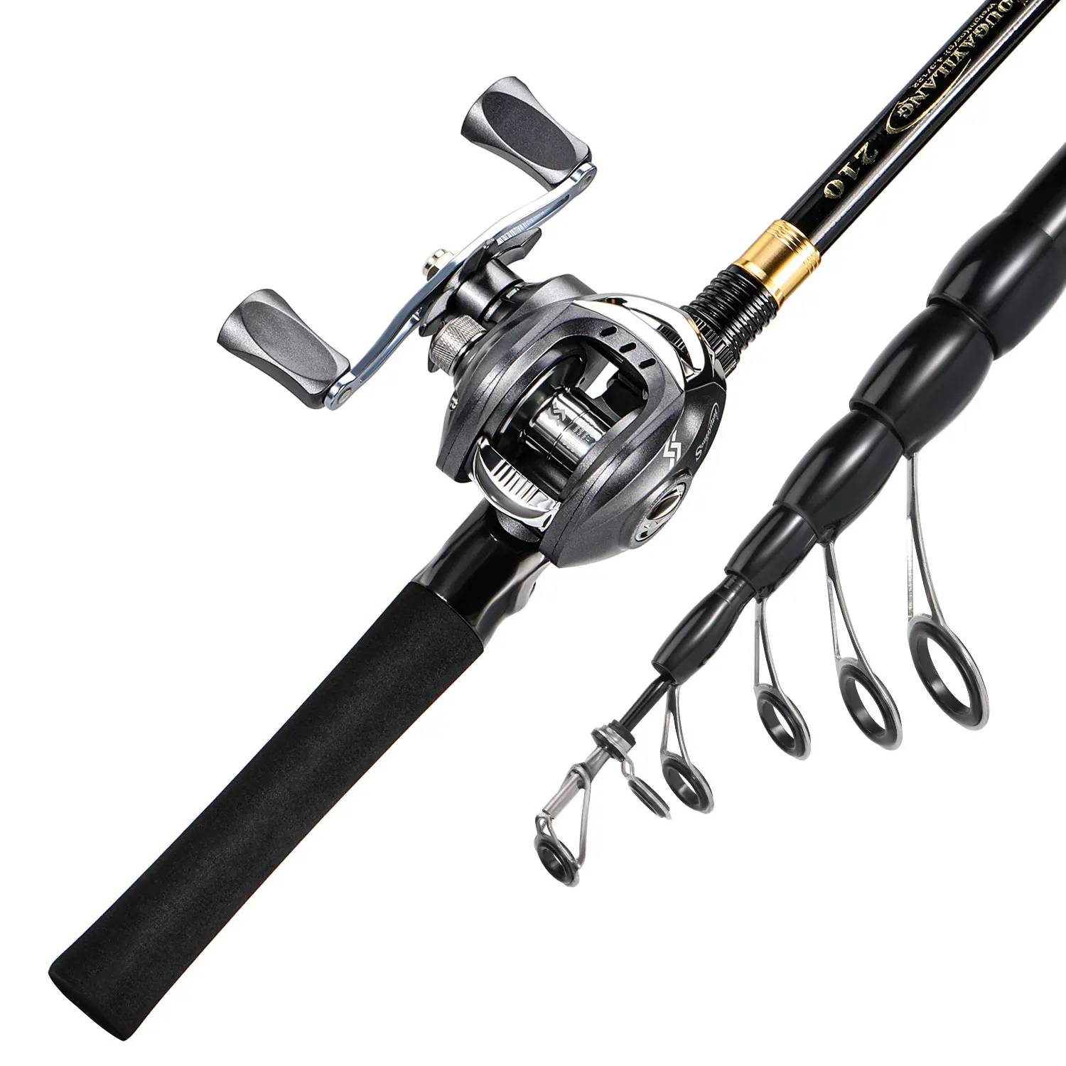 Sougayilang Combo de pesca telescópica 1,8-2,4 m caña de pescar de fibra de carbono 8,1:1 Carrete de pesca máximo de 11LB con accesorios de pesca