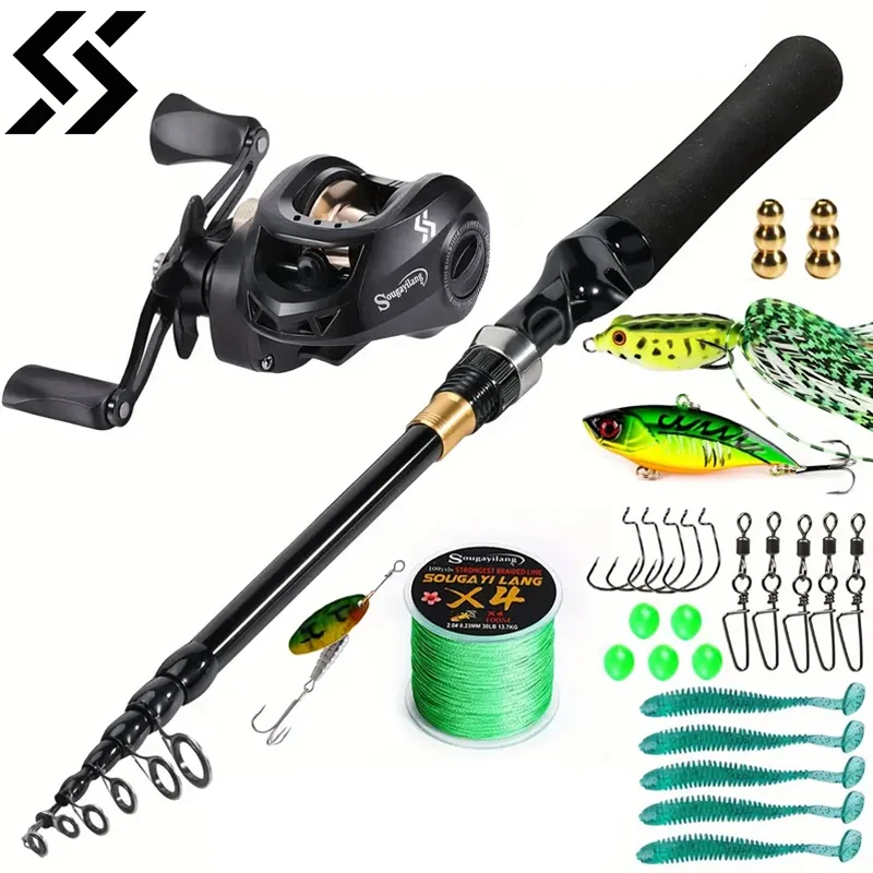 Sougayilang Combo de pesca telescópica 1,8-2,4 m caña de pescar de fibra de carbono 8,1:1 Carrete de pesca máximo de 11LB con accesorios de pesca
