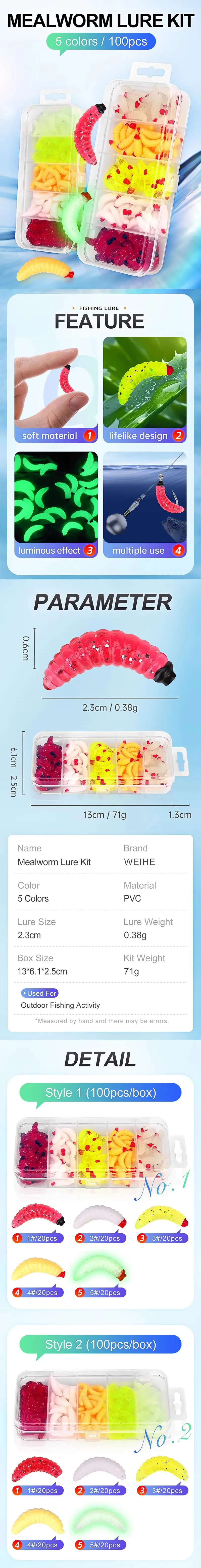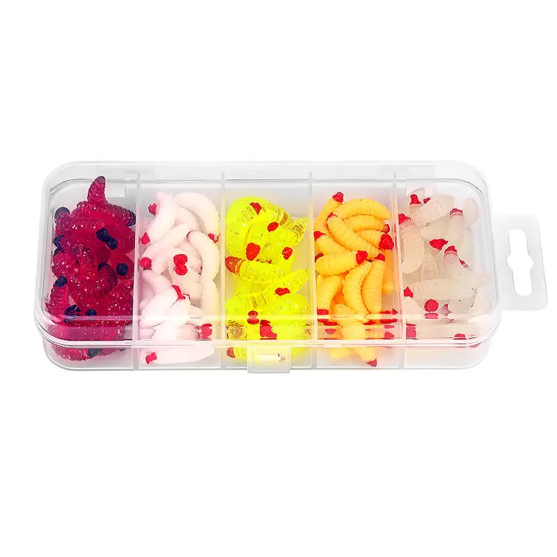 Combo de señuelo Artificial suave, 5 colores, Mini Kit de señuelo de gusano de comida, cebo de gusano, caja de señuelos de Pesca Wobbler de agua dulce y salada