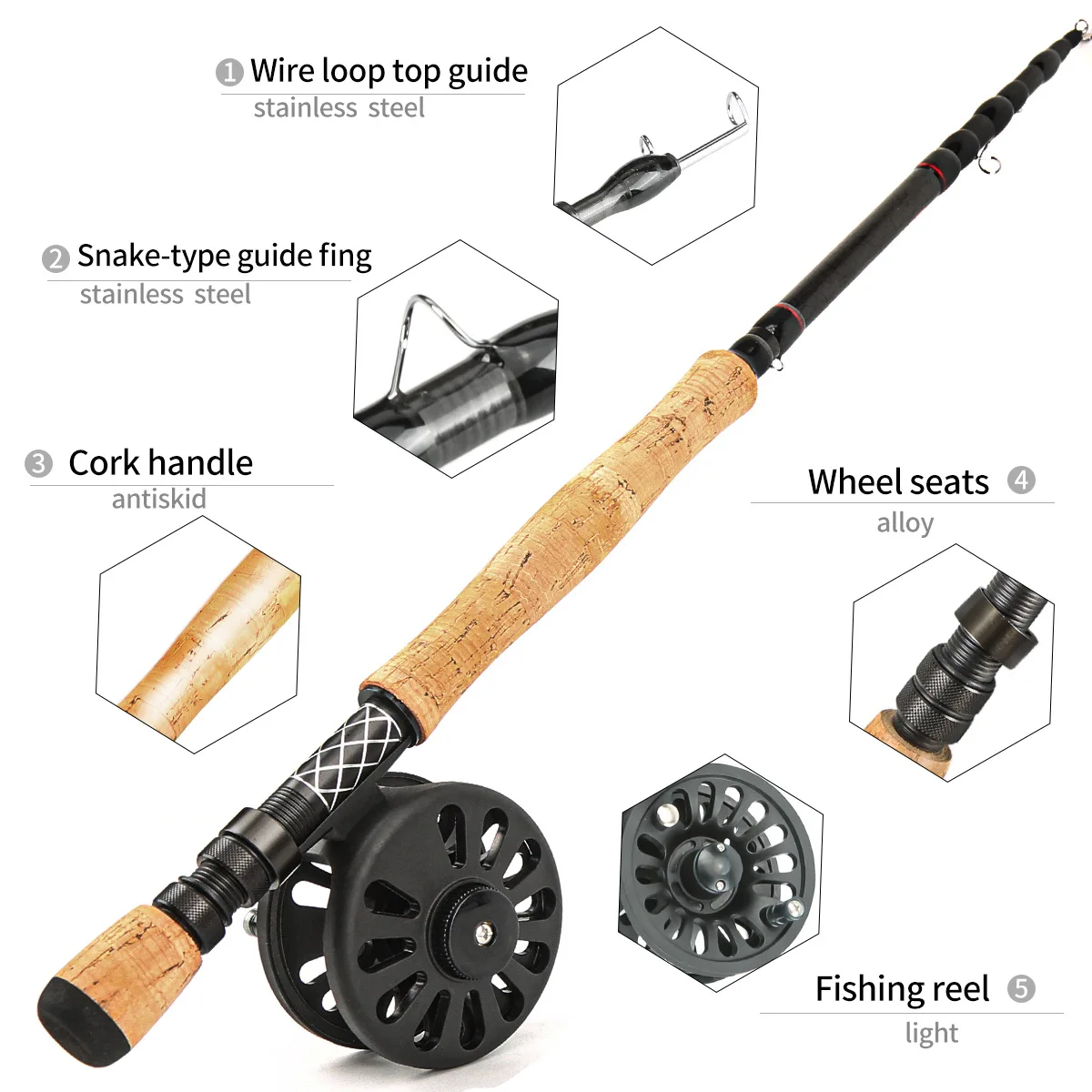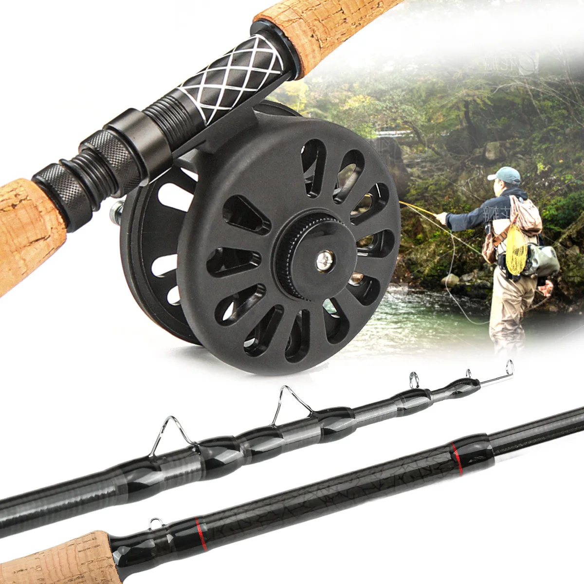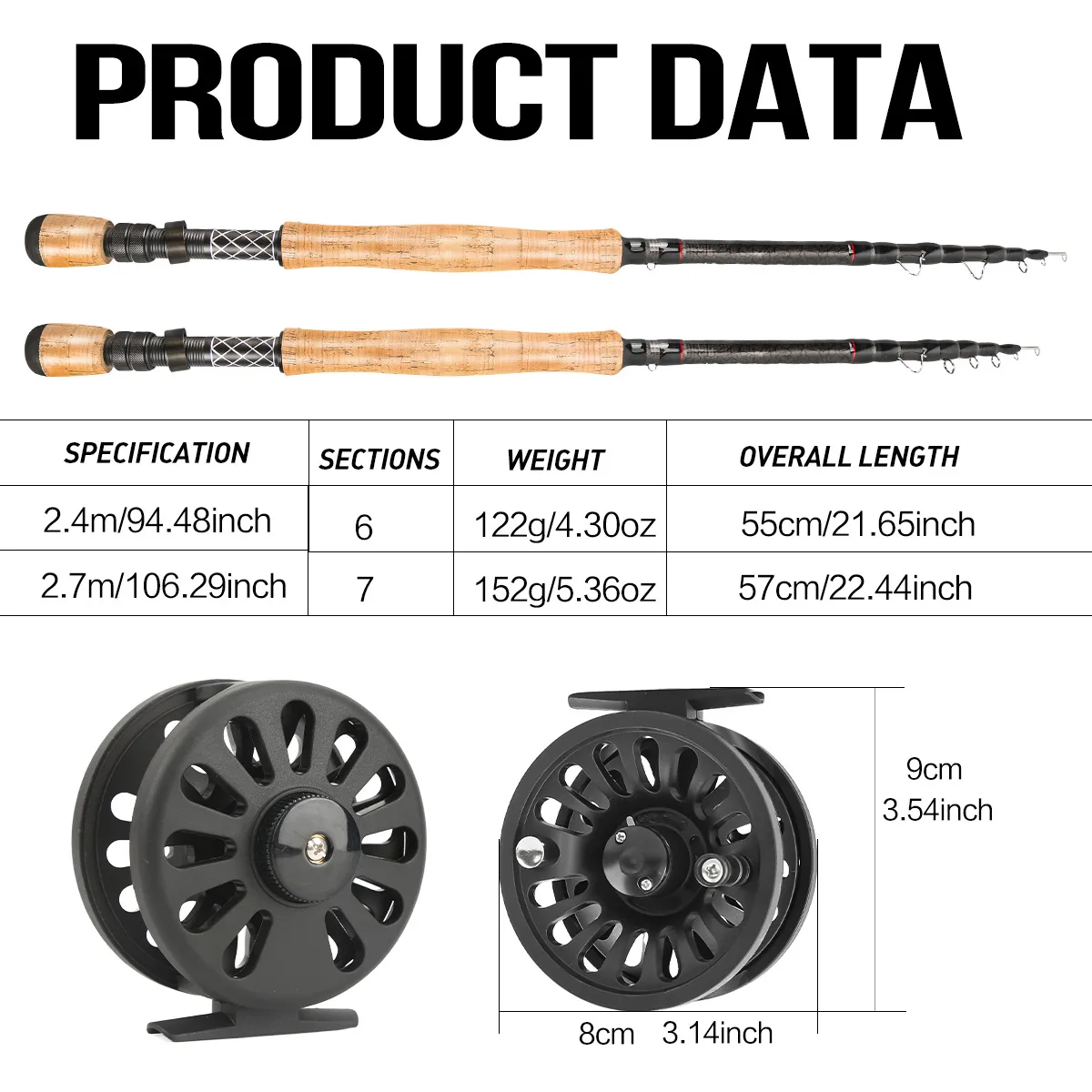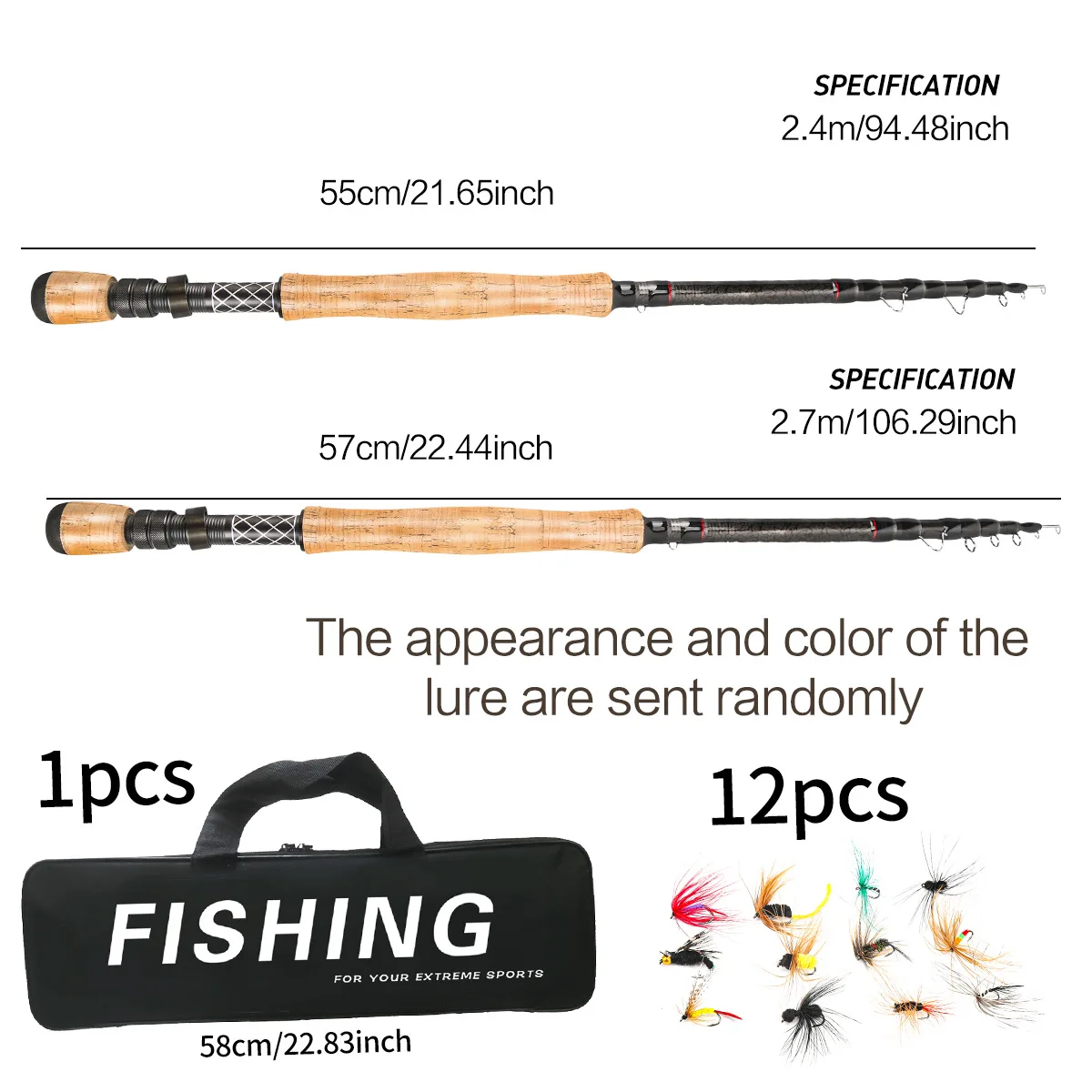 Combo de varilla de fundición telescópica de 2,4/2,7 M, caña de señuelo de fibra de carbono con bolsa de varilla de carrete, anzuelo para mosca de mar, aparejos de agua dulce