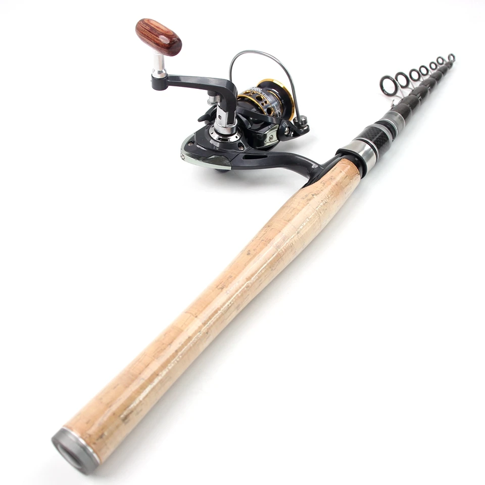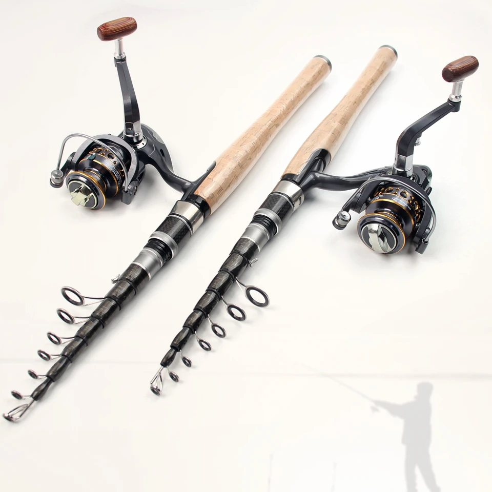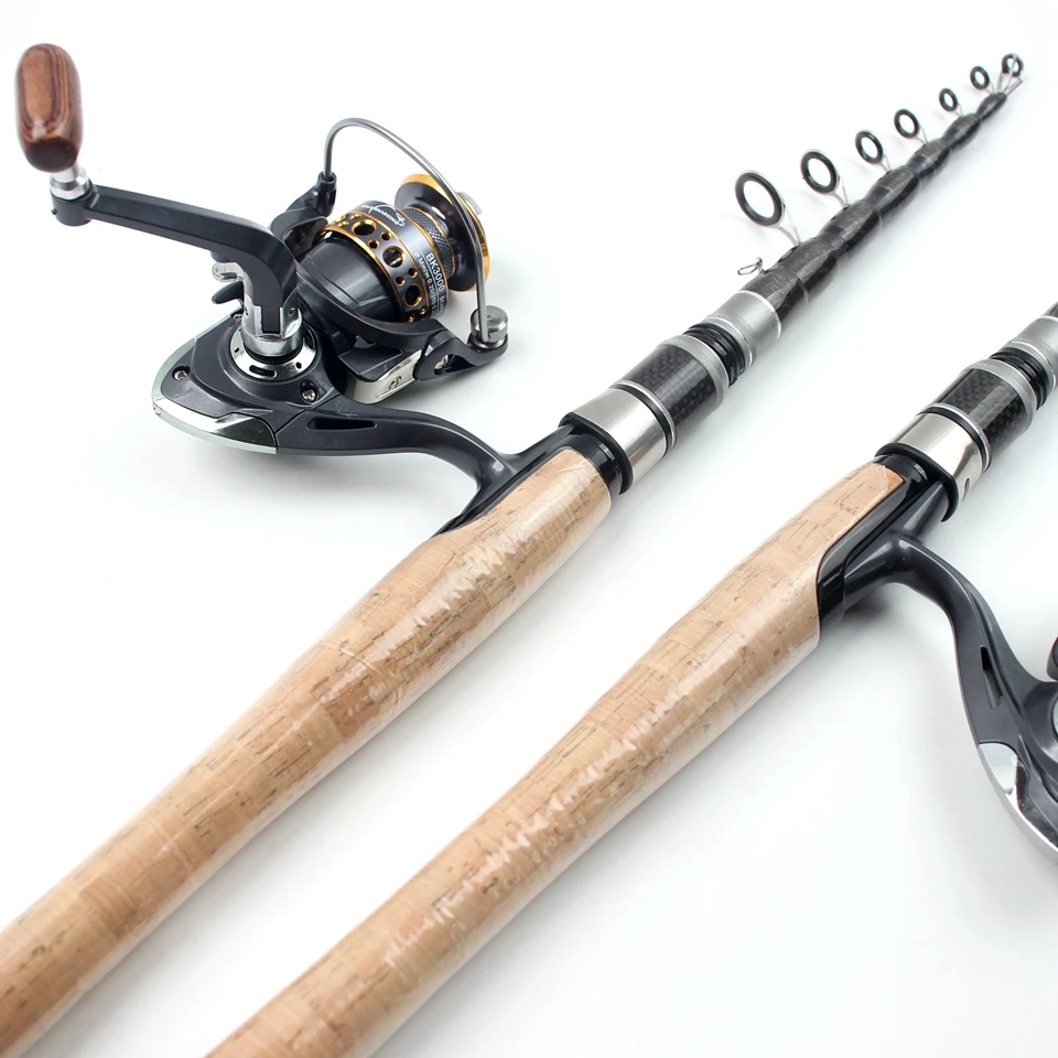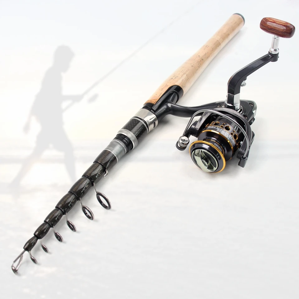 Combos de carrete de caña portátil de 2,7 M, caña de pescar telescópica de carbono y carrete giratorio, Pesca de Surf marino para principiantes