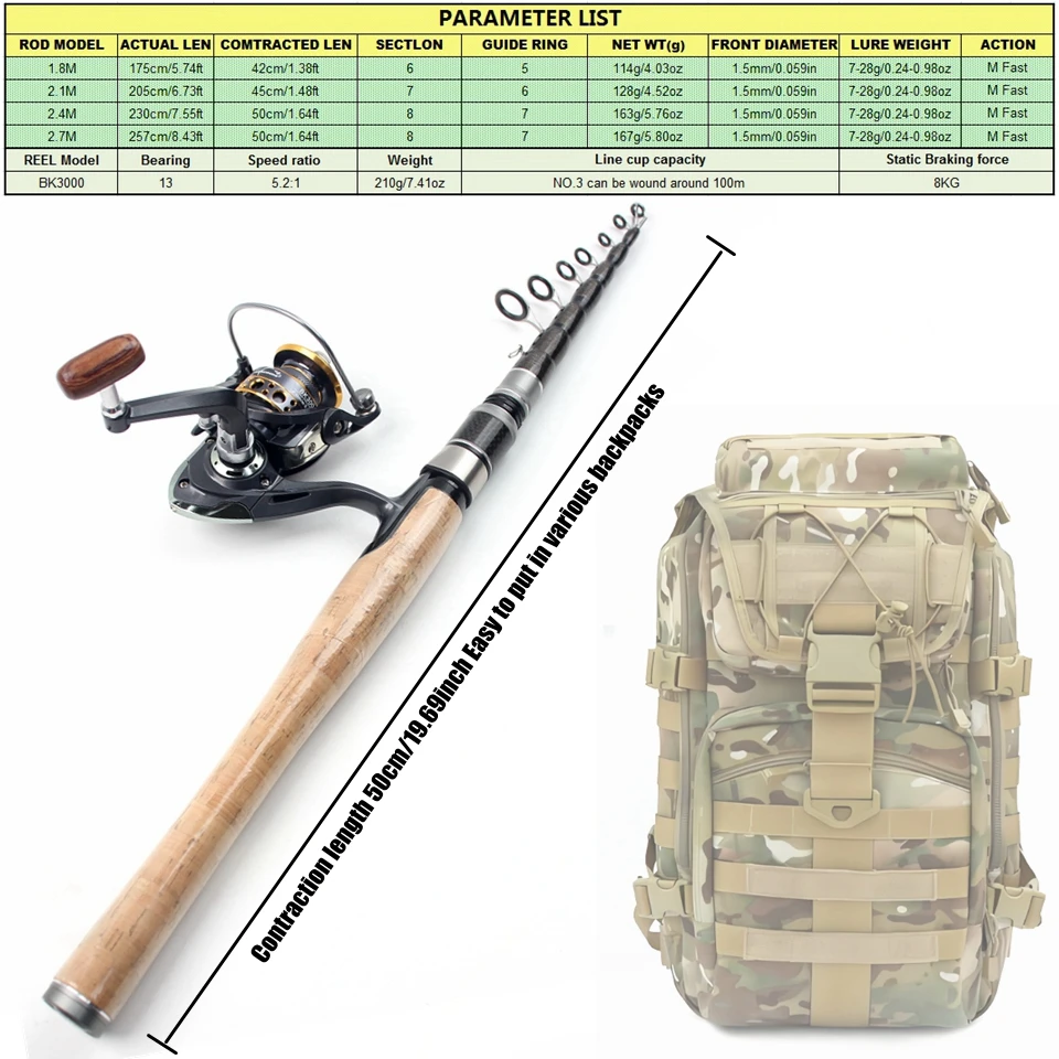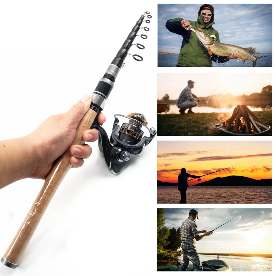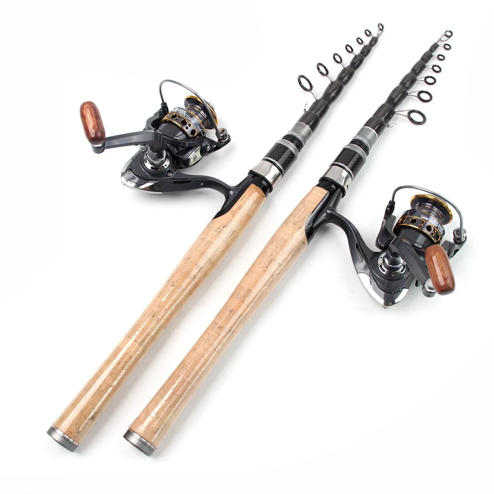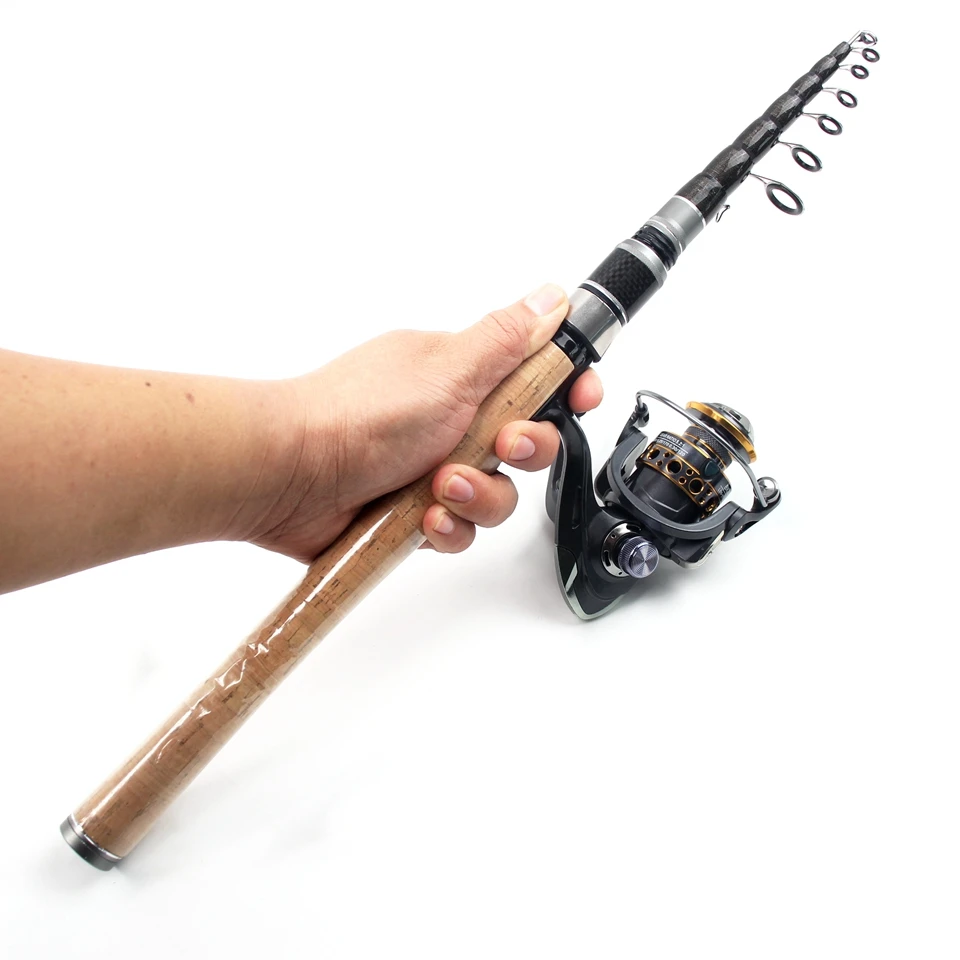Combos de carrete de caña portátil de 2,7 M, caña de pescar telescópica de carbono y carrete giratorio, Pesca de Surf marino para principiantes