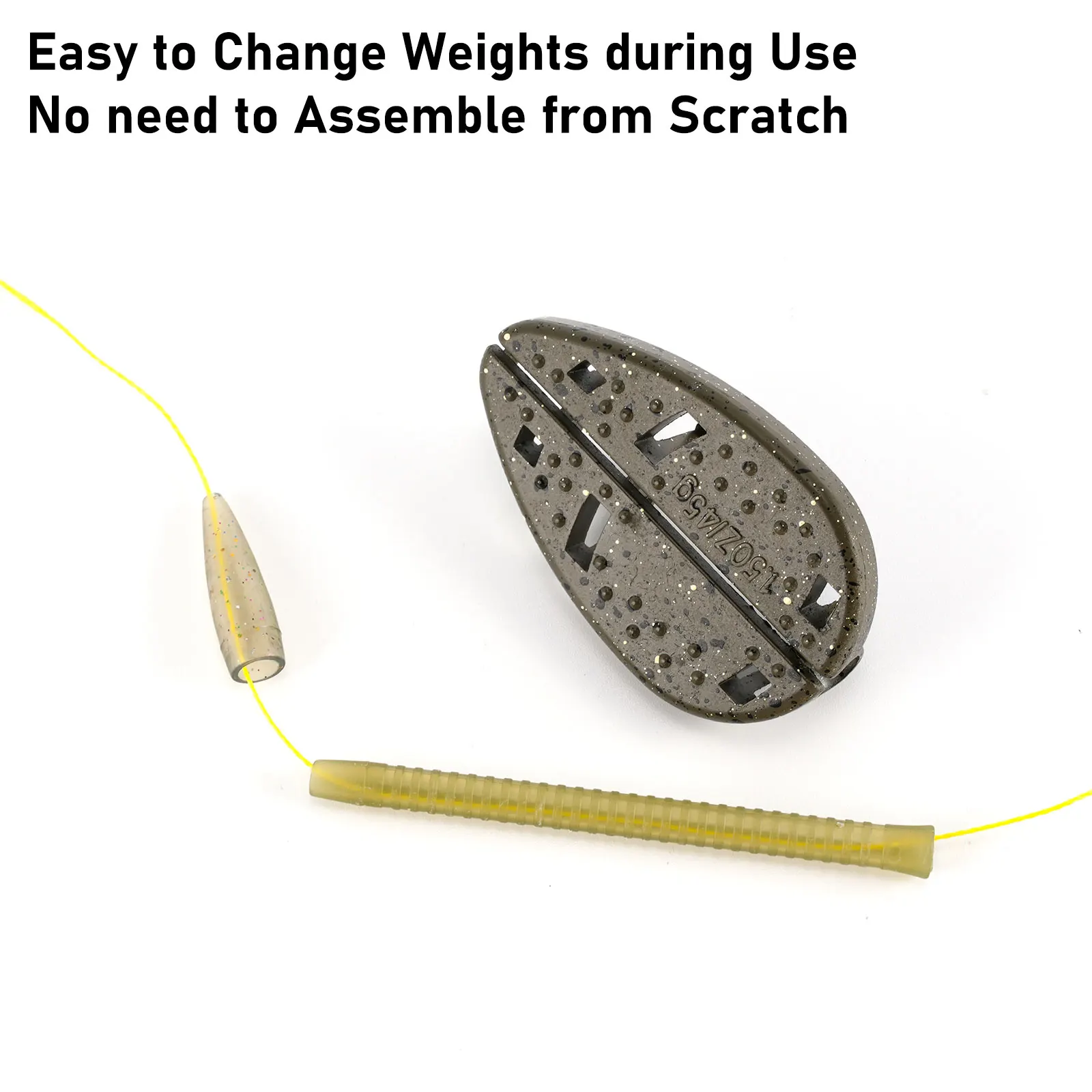 3. Cambios de peso fáciles sobre la marcha: con nuestros alimentadores de método de pesca, puede cambiar fácilmente los pesos durante el uso sin ninguna molestia. Diga adiós a pasar un tiempo de pesca precioso, desmontar y volver a montar los comederos. Simplemente coloque el peso deseado y continúe pescando sin interrupción.