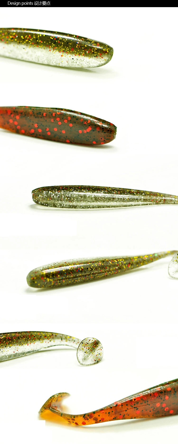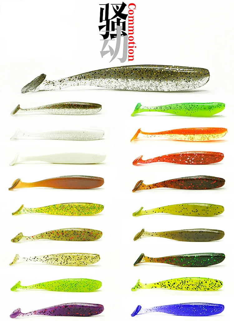 Commotion-señuelo de pesca de cola en T, cebo Artificial suave de 3 pulgadas, aparejo Texas profesional, 7,5 cm/2,2g, lote de gusanos, 5 piezas