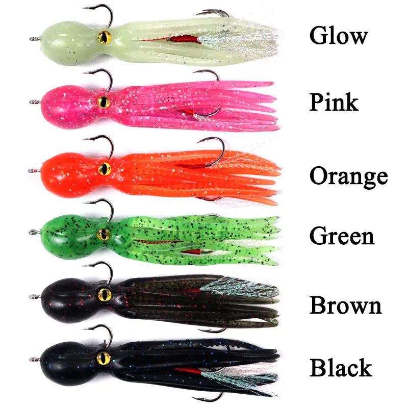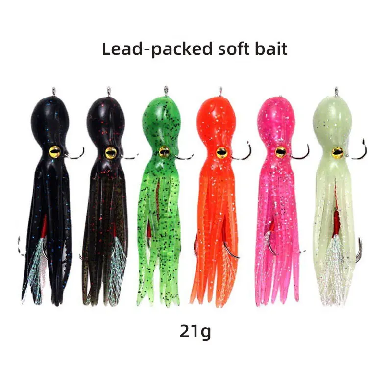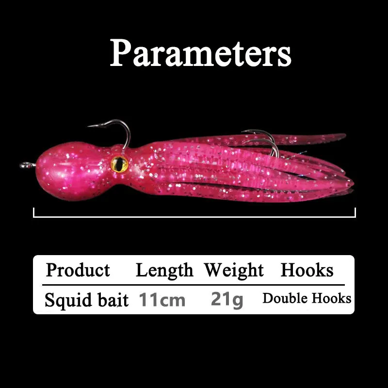 Como señuelo suave faldas de calamar cebo 21g11cm señuelo de pesca pulpo barco pesca en el mar PVC goma Artificial cebo suave Trolling Leurre