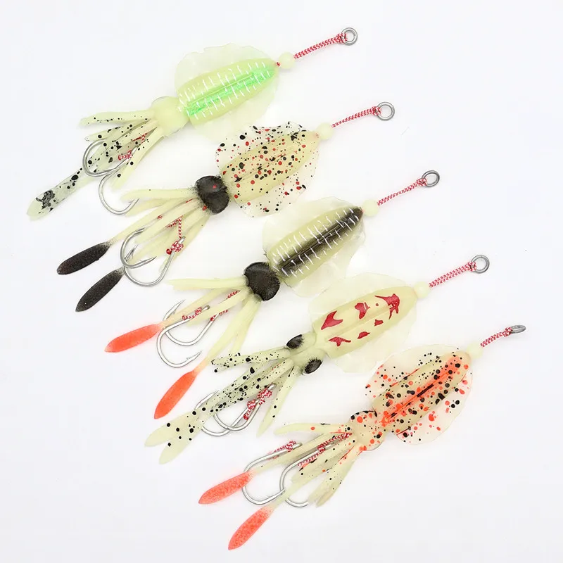 Como señuelo suave faldas de calamar cebo señuelo de pesca pulpo barco pesca en el mar PVC goma Artificial cebo suave pesca Trolling Leurre