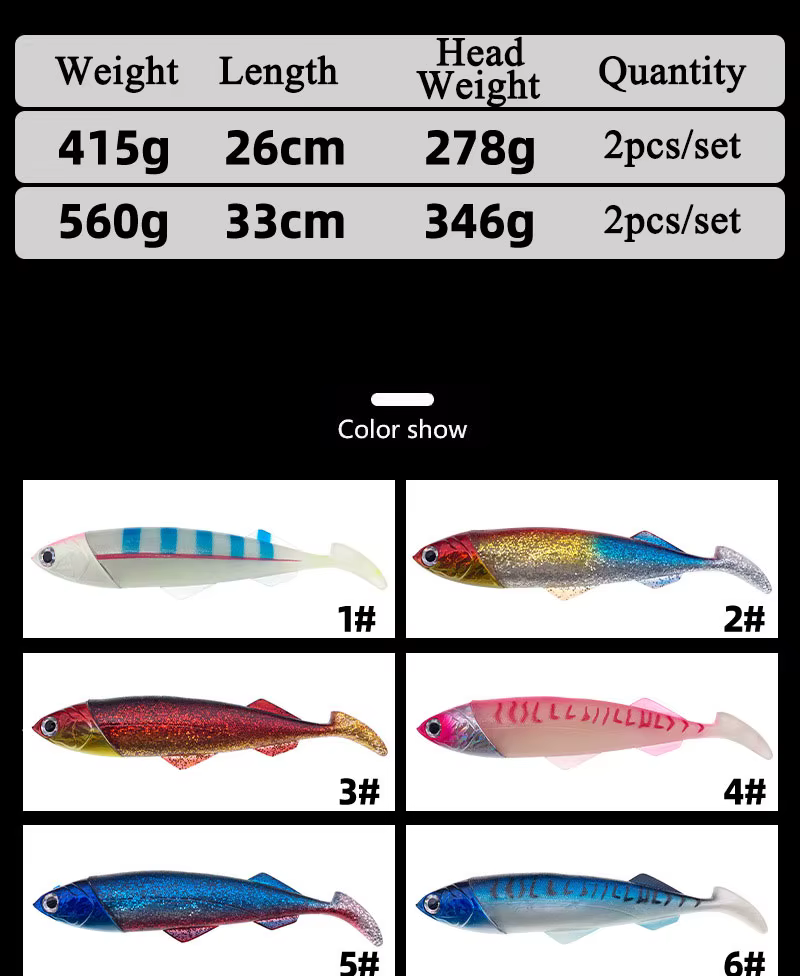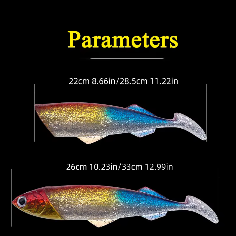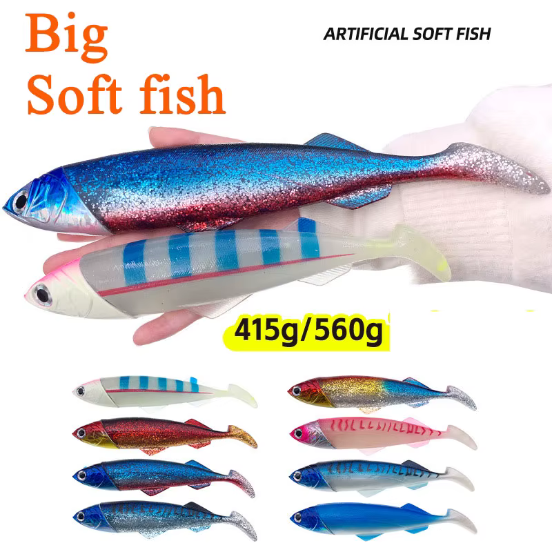 Como señuelo suave, pez grande, cebo pesado, señuelo de pesca de curricán, cola en T, barco, pesca en el mar, goma de PVC, cebo Artificial suave Leurre