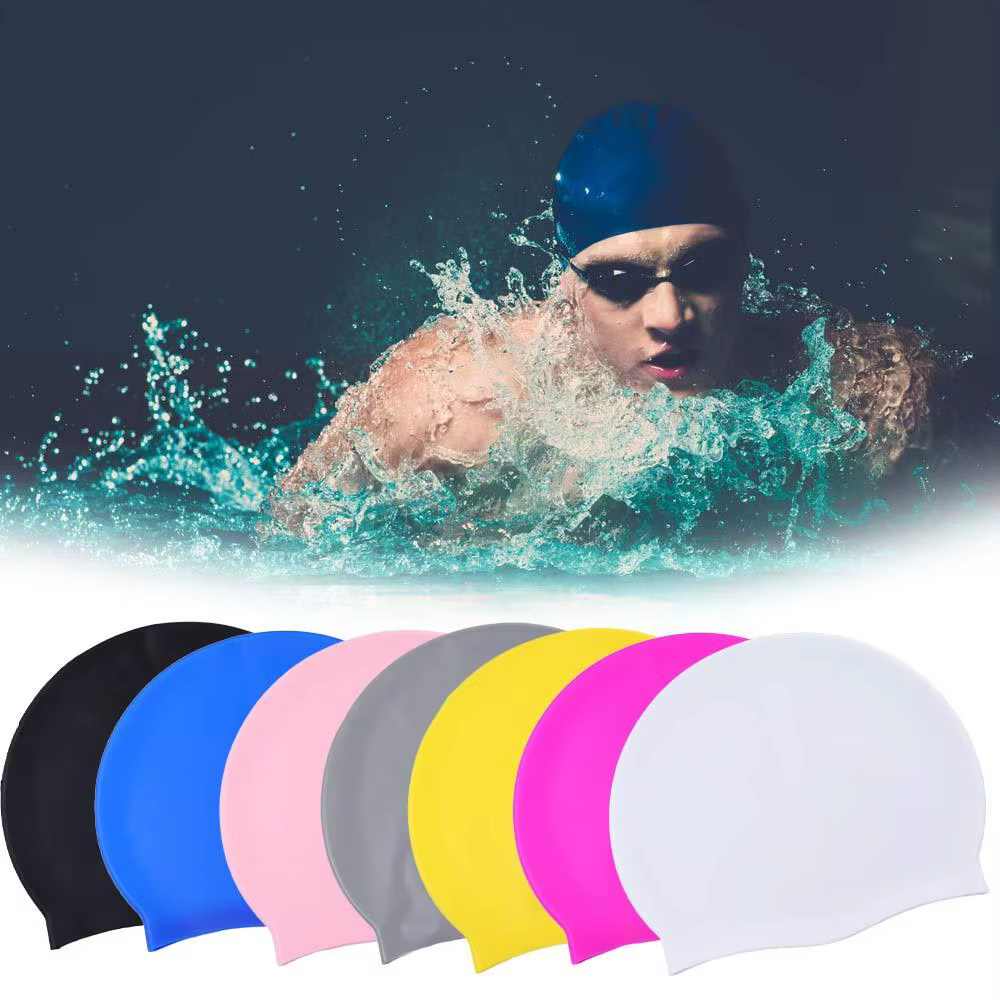 Packing:1 pc swimming cap Silicone Swimming Cap Ladies Mens Waterproof Adult Sports High Elasticity Ear Protection Swimming Cap.These swimming caps are professionally designed for all swimmers with high quality silicone material. good for men and women.Their material and perfect design are really comfortable. You won't feel too tight or too loose.ComfortProfessional choice, superior comfort, extra stretch and exceptional fit.High performance silicone material. Waterproof and protects your hair.