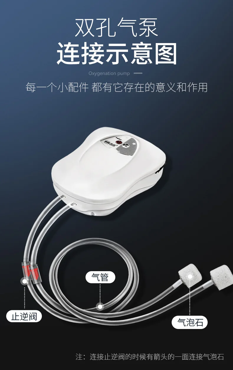 Specifications: 2 check valves + 1 USB charging cable + 2 tubes + 2 bubble stones