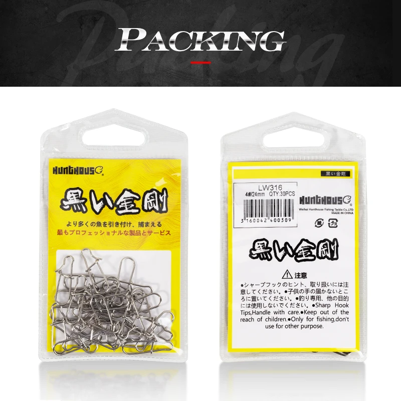 Hunthouse 30 unids/bolsa conector de anzuelo de pesca gancho de acero inoxidable cierre de Clip rápido Snap giratorio anillos sólidos broches de seguridad accesorios de pesca