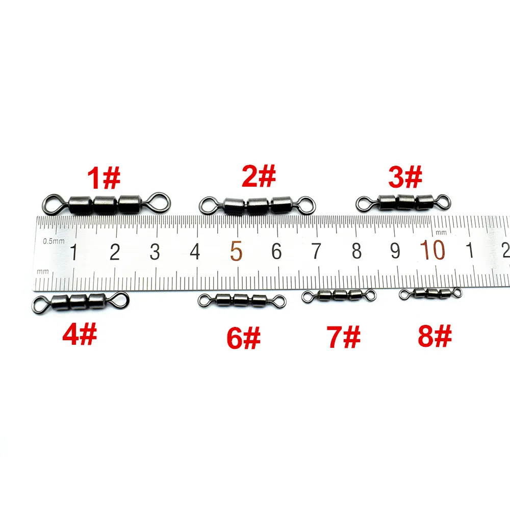 Conector de barril giratorio de triple rodamiento para pesca, accesorio profesional de alta velocidad, 8 tamaños, 50 unidades por lote