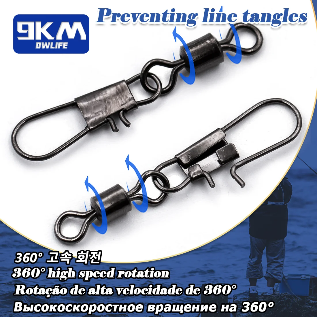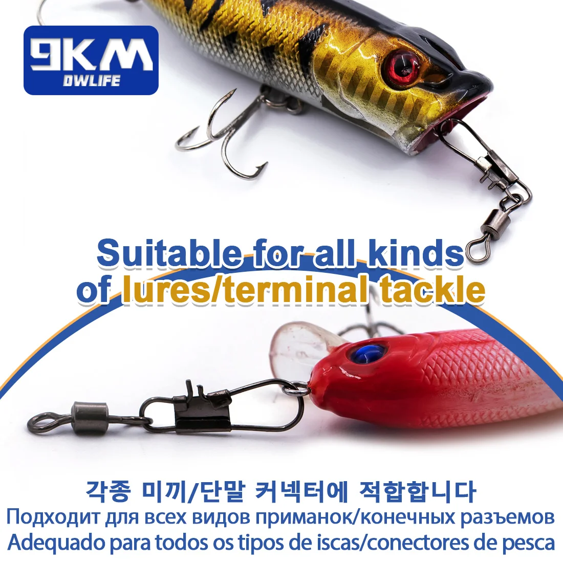 Flexible Rotating: Swivel in the case of force can also be flexible rotation and allow quick change of tackle. The snaps are rotating smoothly and avoiding line winding. Reduce your fishing work.