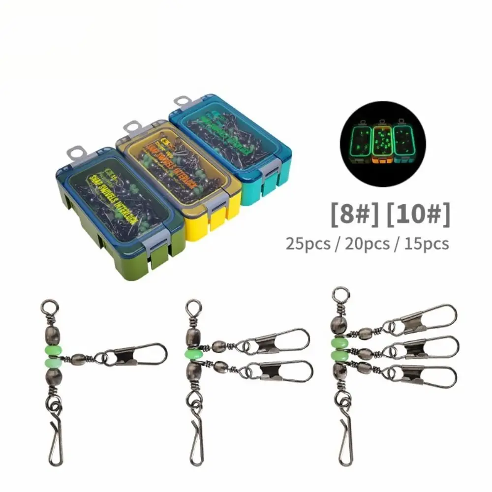 Package Includes:15/20/25pcs Fishing Swivels Make from Plastic and Metal, high strength, ensuring they can endure significant pressure during fishing.