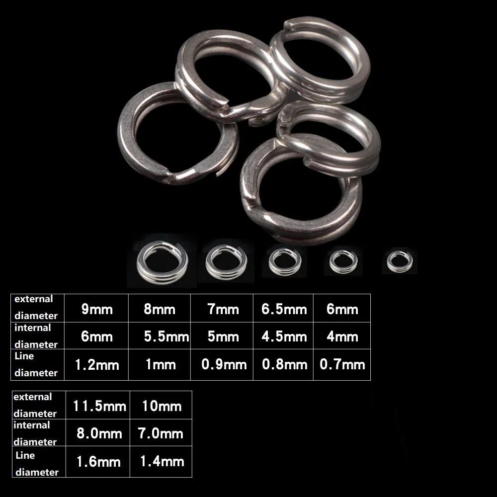 Conector de doble bucle plano de acero inoxidable, anillos planos divididos, gancho de anillo de pesca, accesorios de herramientas divididos de doble círculo, 10-100 unids/bolsa