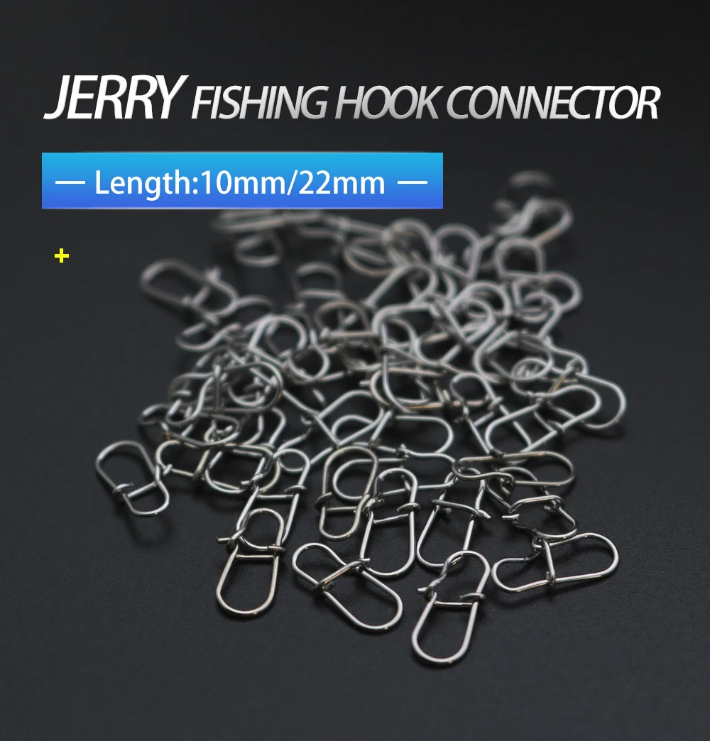 Conector de anzuelo de pesca de acero inoxidable Jerry, gancho de seguridad, barril a presión, anillos sólidos giratorios, gancho de 4,5/8,7G, artículos de bloqueo de Clip rápido
