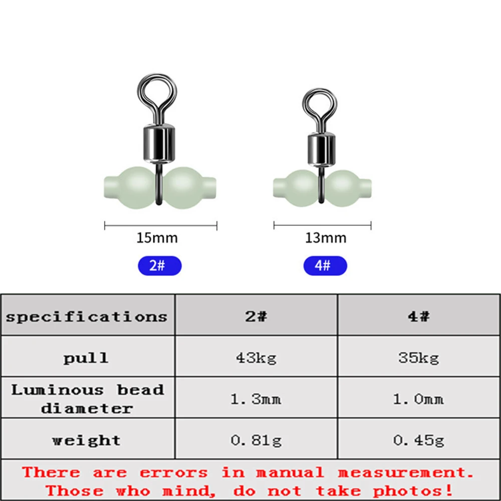 This product is designed for night fishing, the beads are made of luminous materials, which helps attract fish, and the rolling barrel swivels are constructed by premium metal with fine machining, high strength and sturdy. Suitable for both freshwater and sea fishing, ideal accessory for fishing lovers.