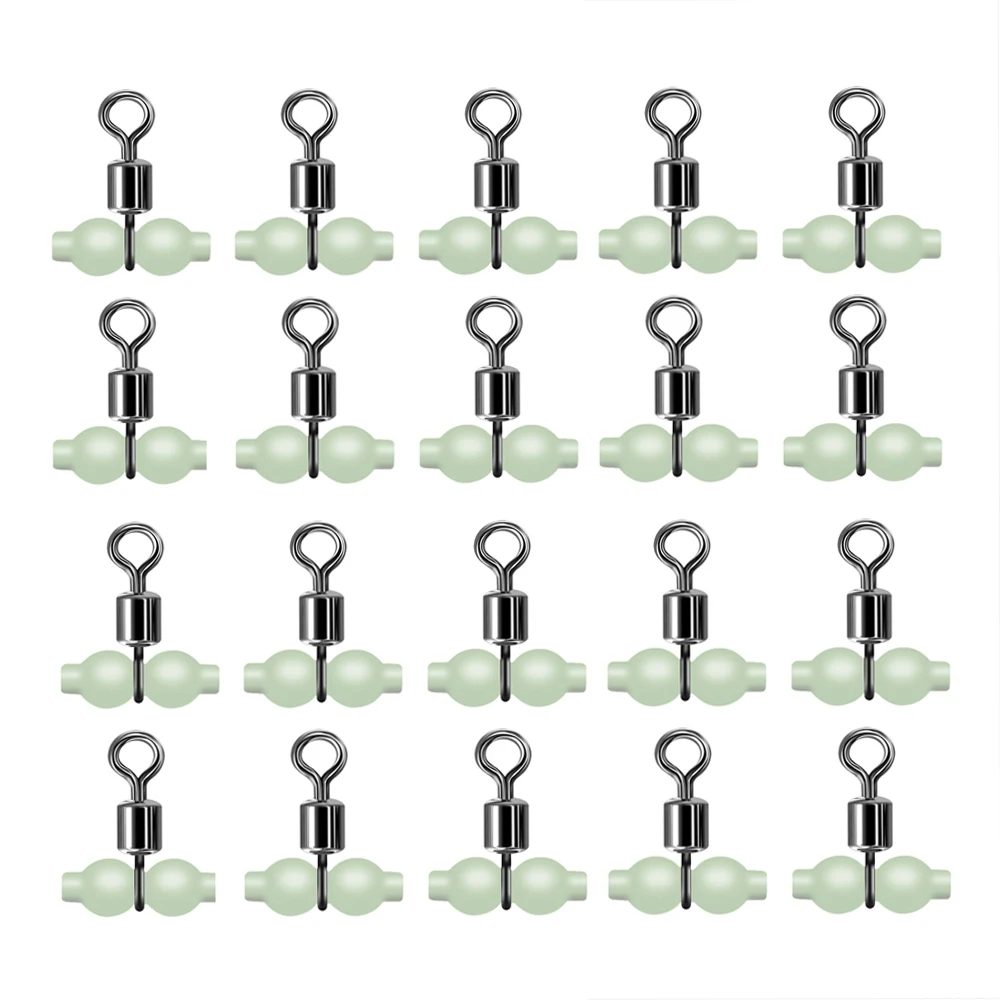 20pcs 3 Way Durable Luminous Fishing Rolling Swivels Connector Sea Tackle Hook Connector Night Fishing Freshwater & Sea Fishing83500