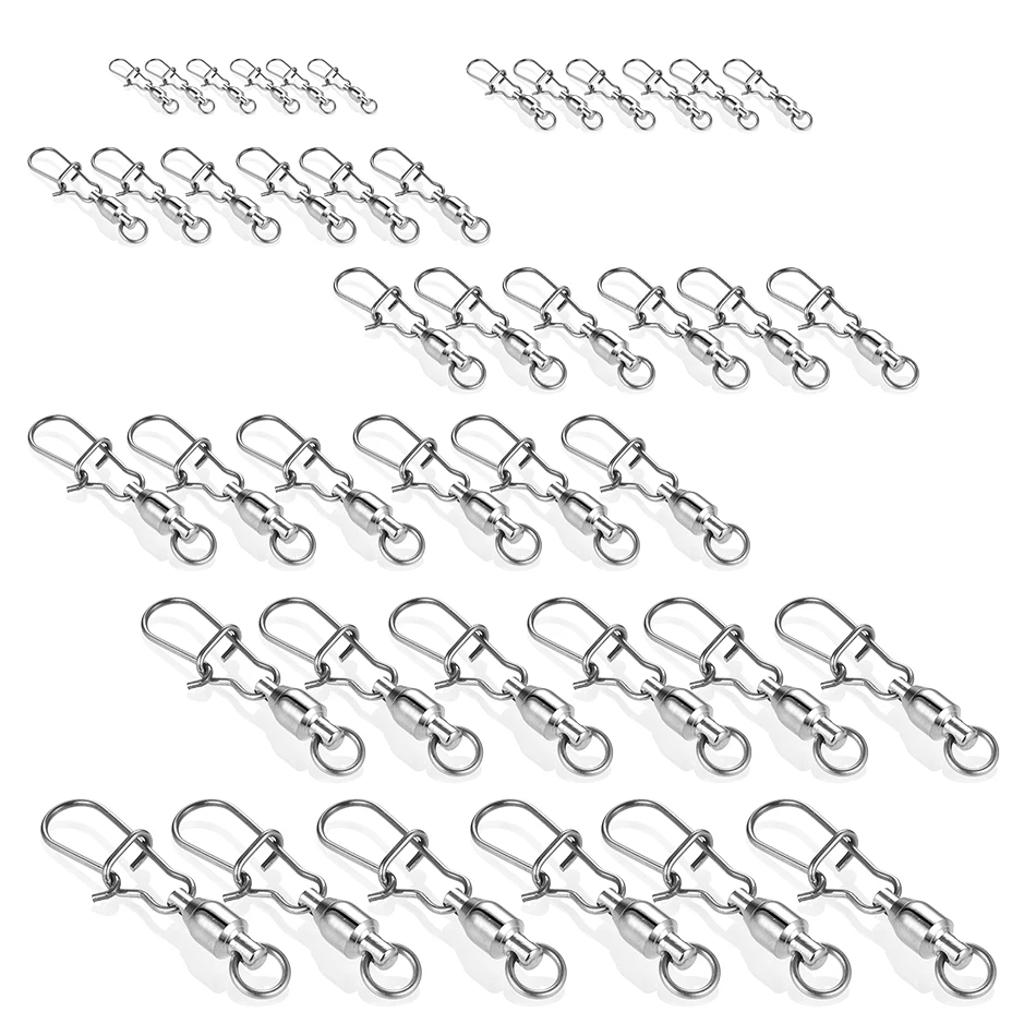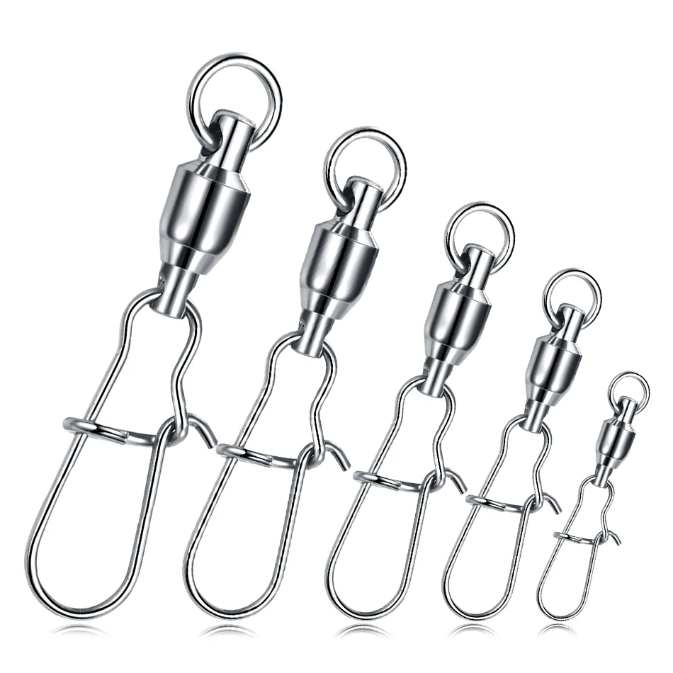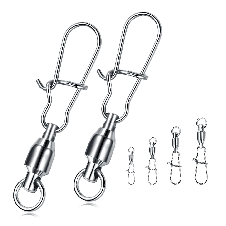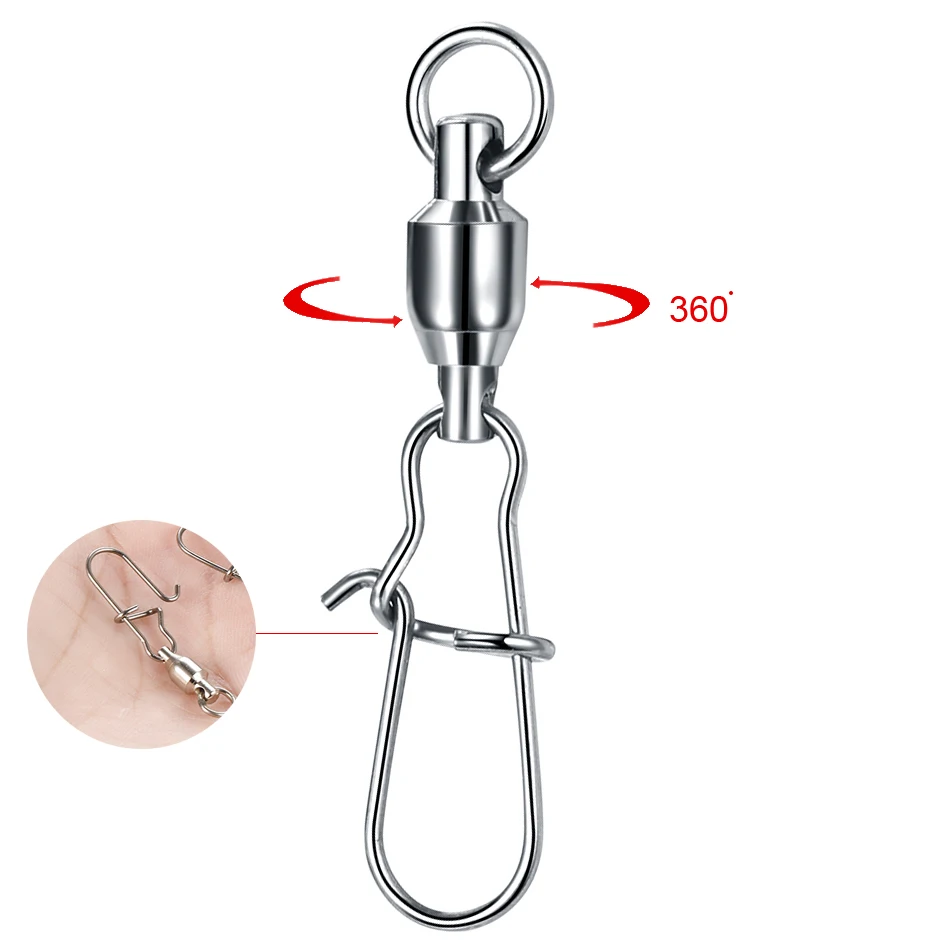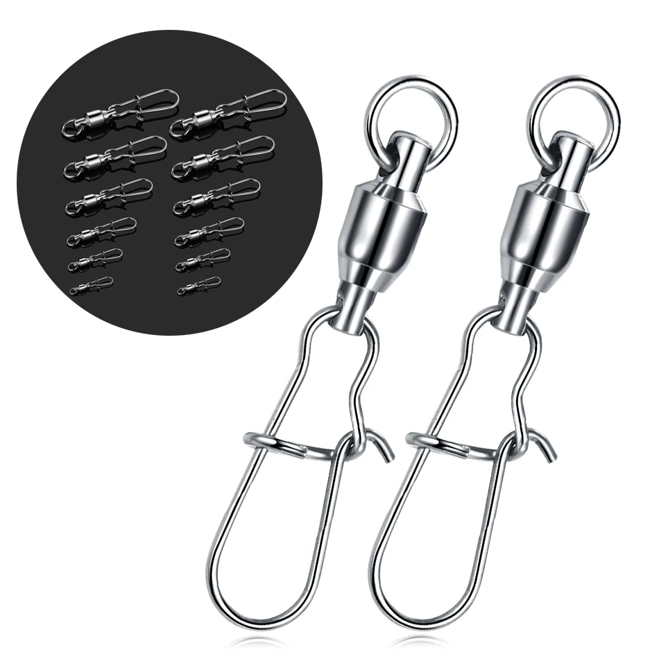 10 unids/lote conector de pesca de acero inoxidable, interbloqueo giratorio con rodamiento enganchado, señuelo de anzuelo, accesorios para aparejos