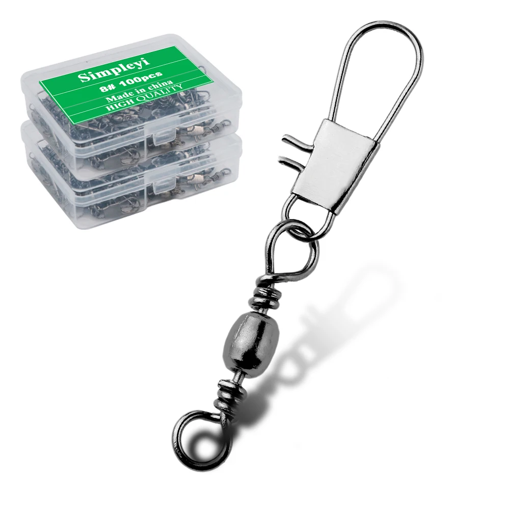 Conector giratorio de pesca de acero inoxidable, accesorios de aparejos de pesca, 50-100 unids/lote por caja