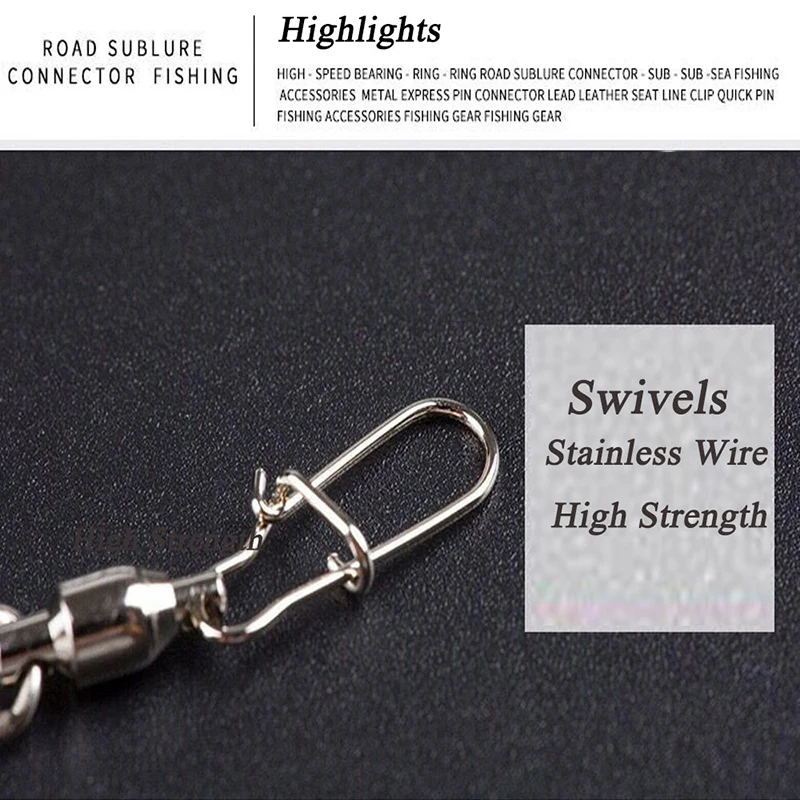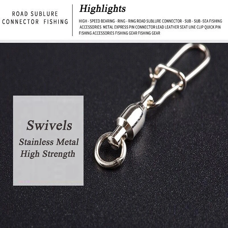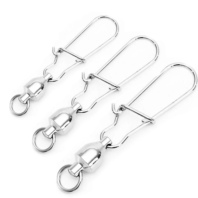 Conector giratorio de pesca de acero inoxidable, aparejos de pesca con enclavamiento, rodamiento de bolas fuerte, 10 unids/lote por paquete