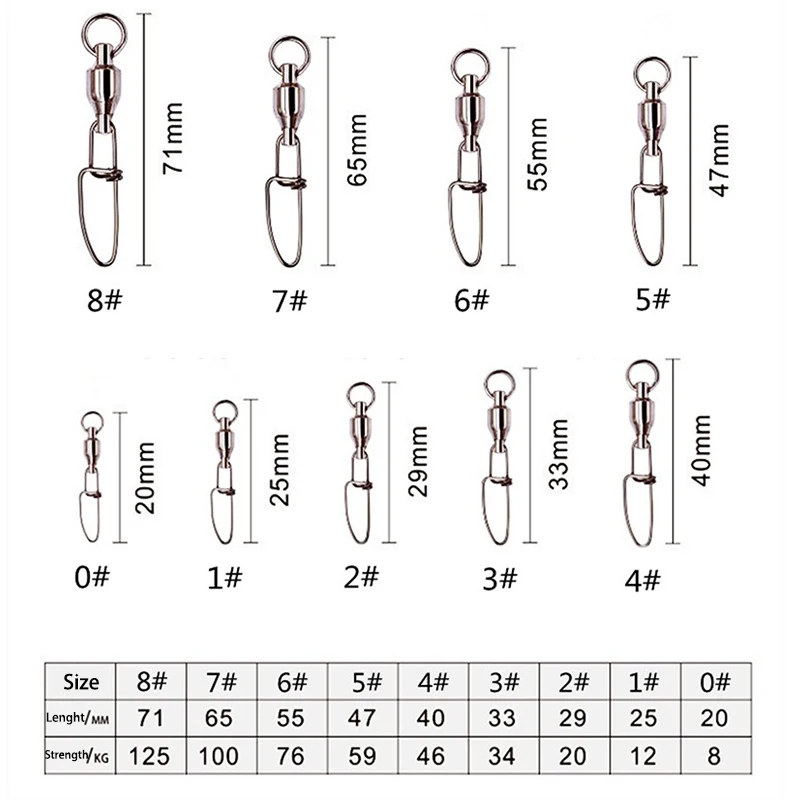 10-50 unids/lote de conector giratorio de pesca de acero inoxidable #0-#4 giratorios rodamiento de bolas de pesca enclavamiento rodante Snap Cross Lock Snap