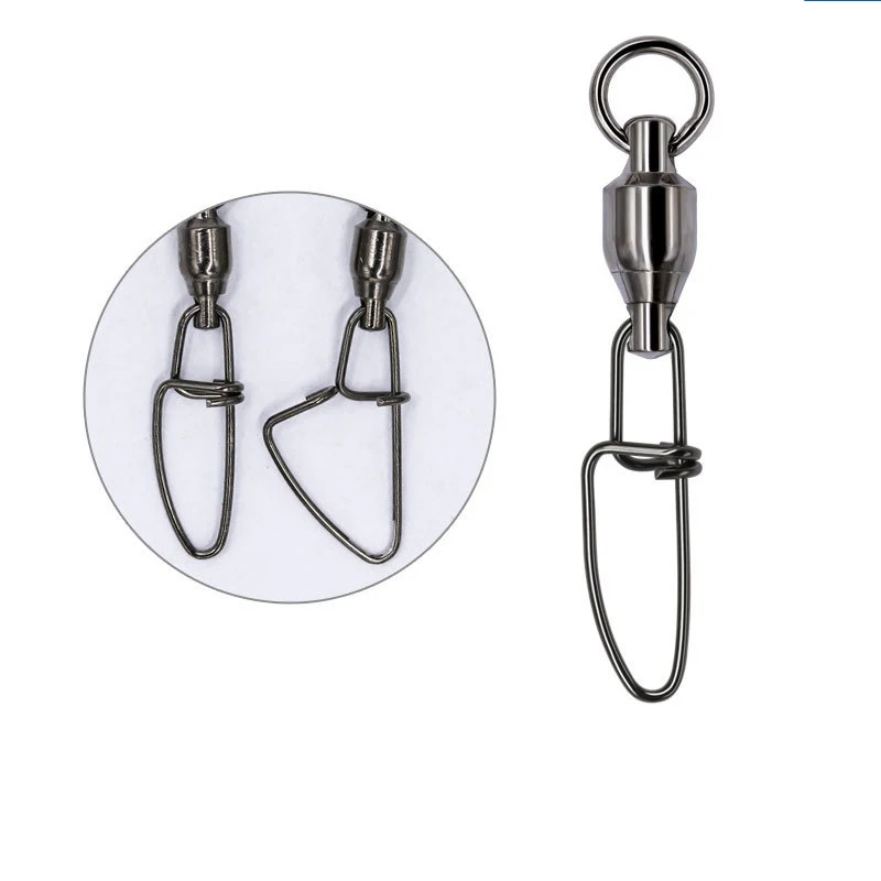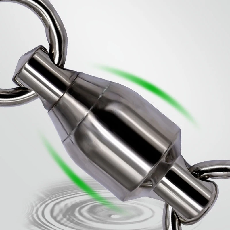 -Los rodamientos giratorios de bolas cargados con bolas de acero inoxidable de clase alta, proporcionan la máxima protección contra líneas retorcidas y enredadas. Imprescindible para curricán, downriggers, agua salada y pesca deportiva.
