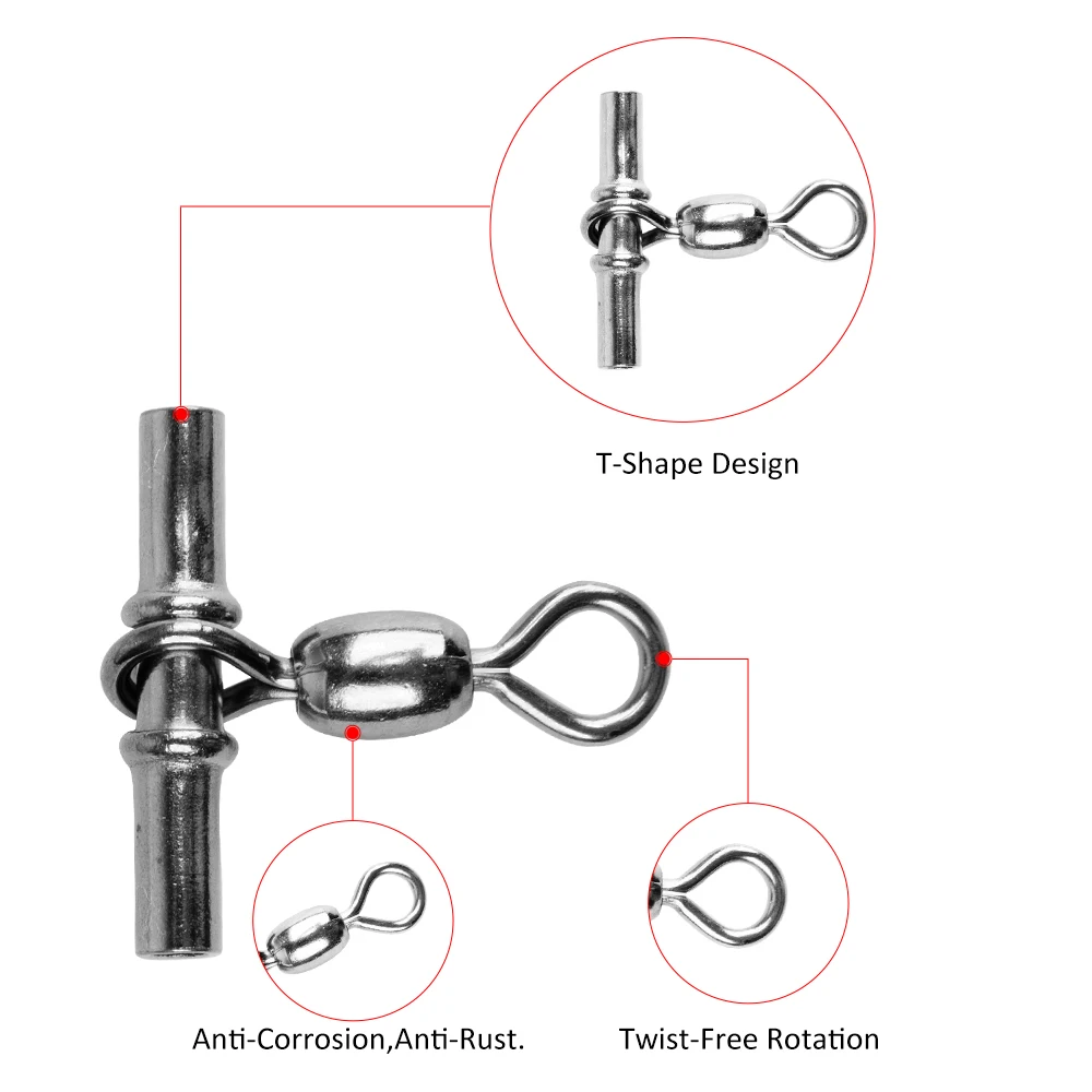 Diseño tipo T:Funda de cobre construida con barril de grúa giratorio cruzado, protege mejor su línea de pesca, evita eficazmente los giros de la línea, ahorra más tiempo y energía para la pesca.