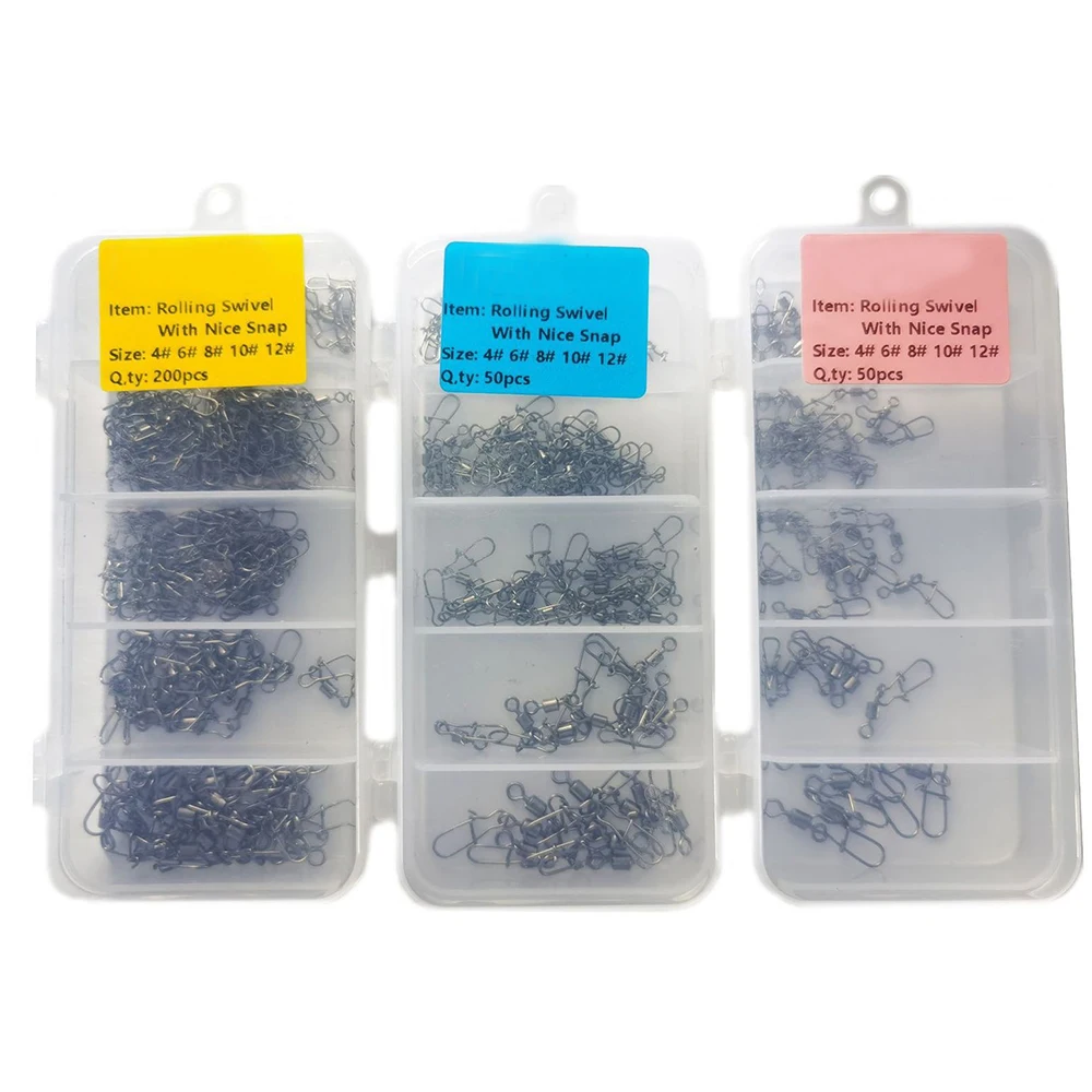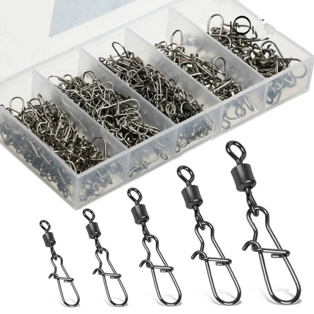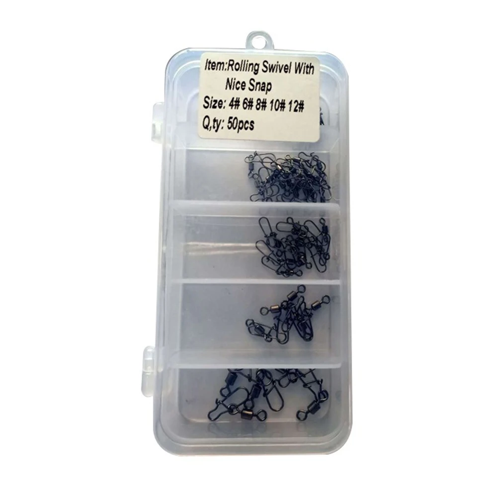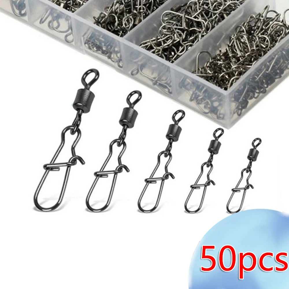 50 unids/caja conector de pesca giratorio pasador de enclavamiento Snap 4 #6 #8 #10 #12 # cuentas giratorias para anzuelo señuelo accesorio de pesca