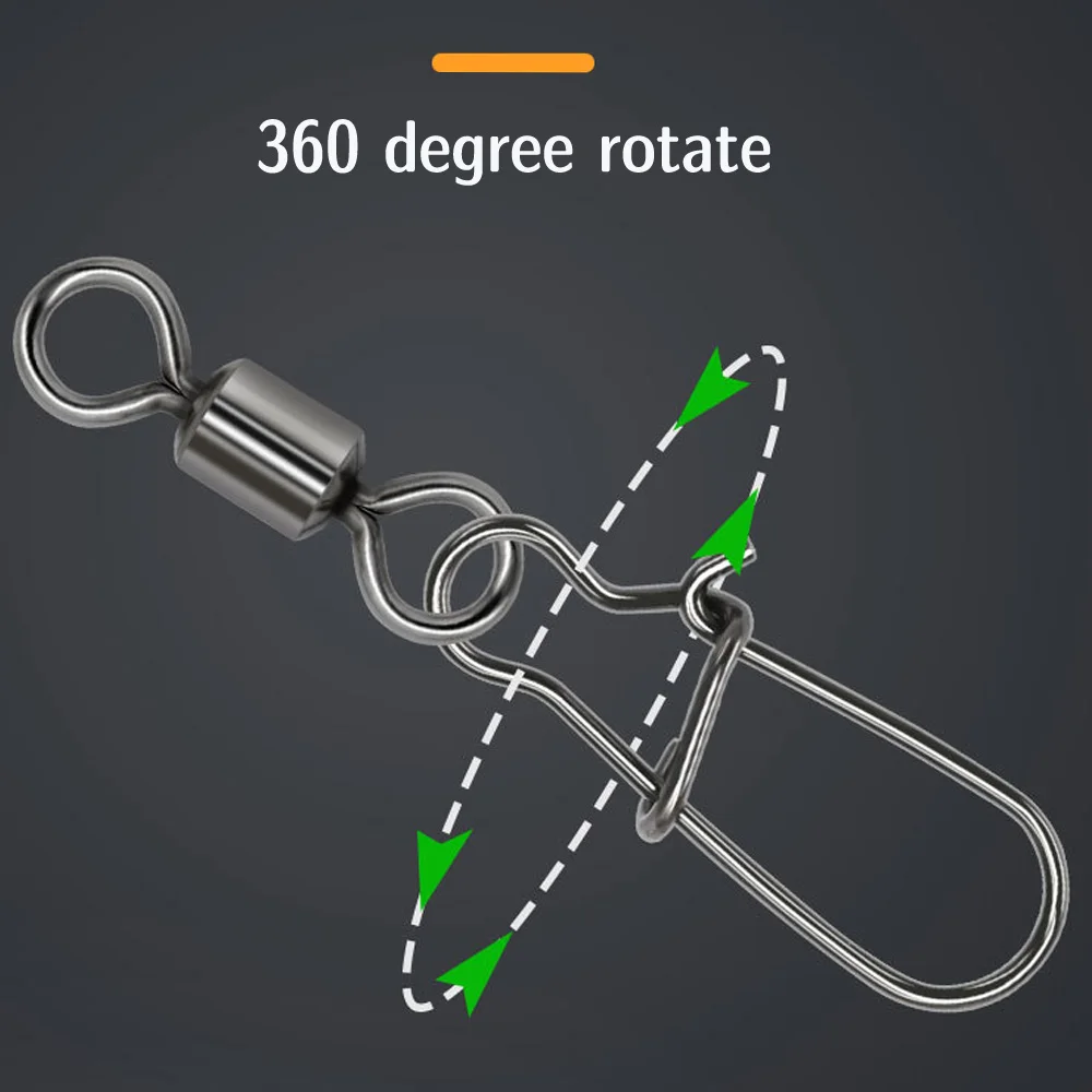Conector a presión giratorio, rodamiento de pasador de acero inoxidable, interbloqueo giratorio 360, aparejos de anillo en forma de 8, herramientas de Pesca, gancho, señuelo, conexión de alambre, accesorios de pesca