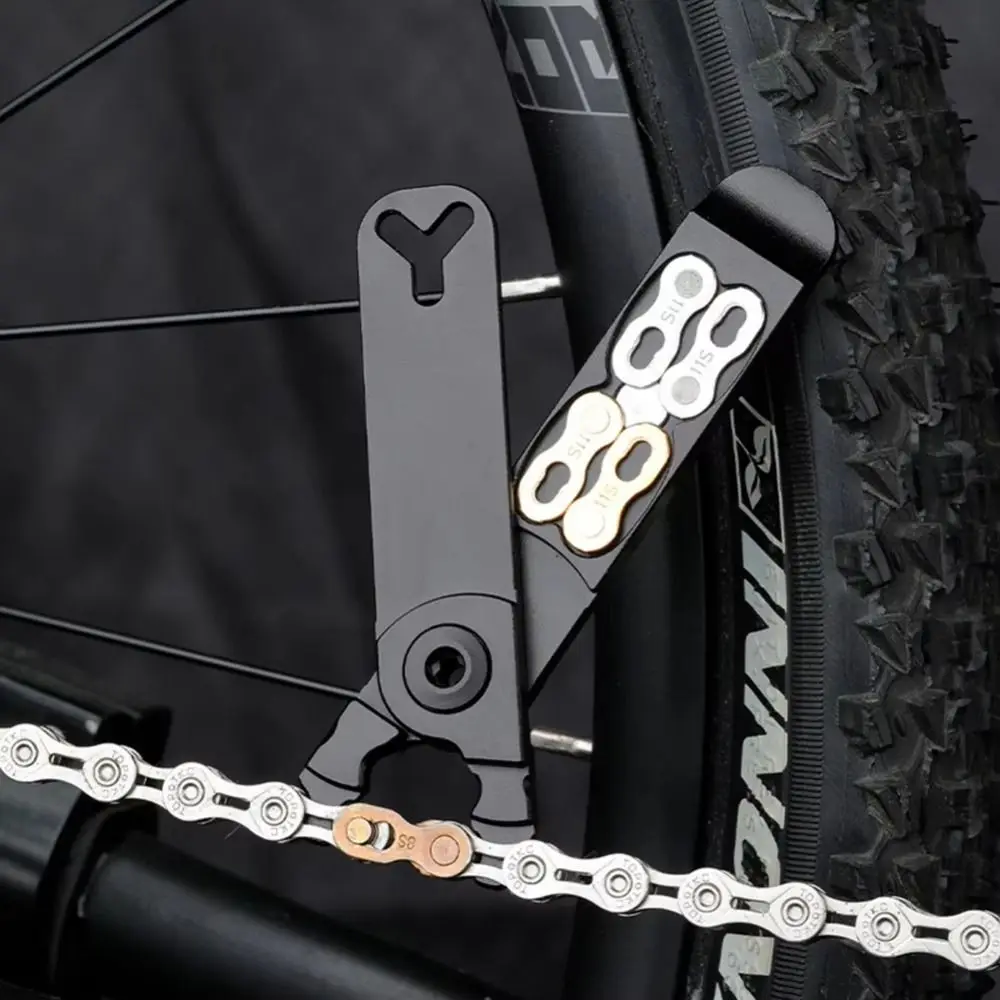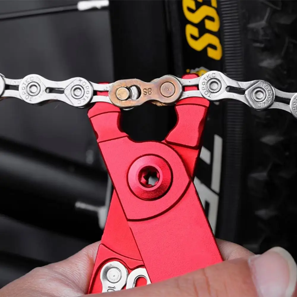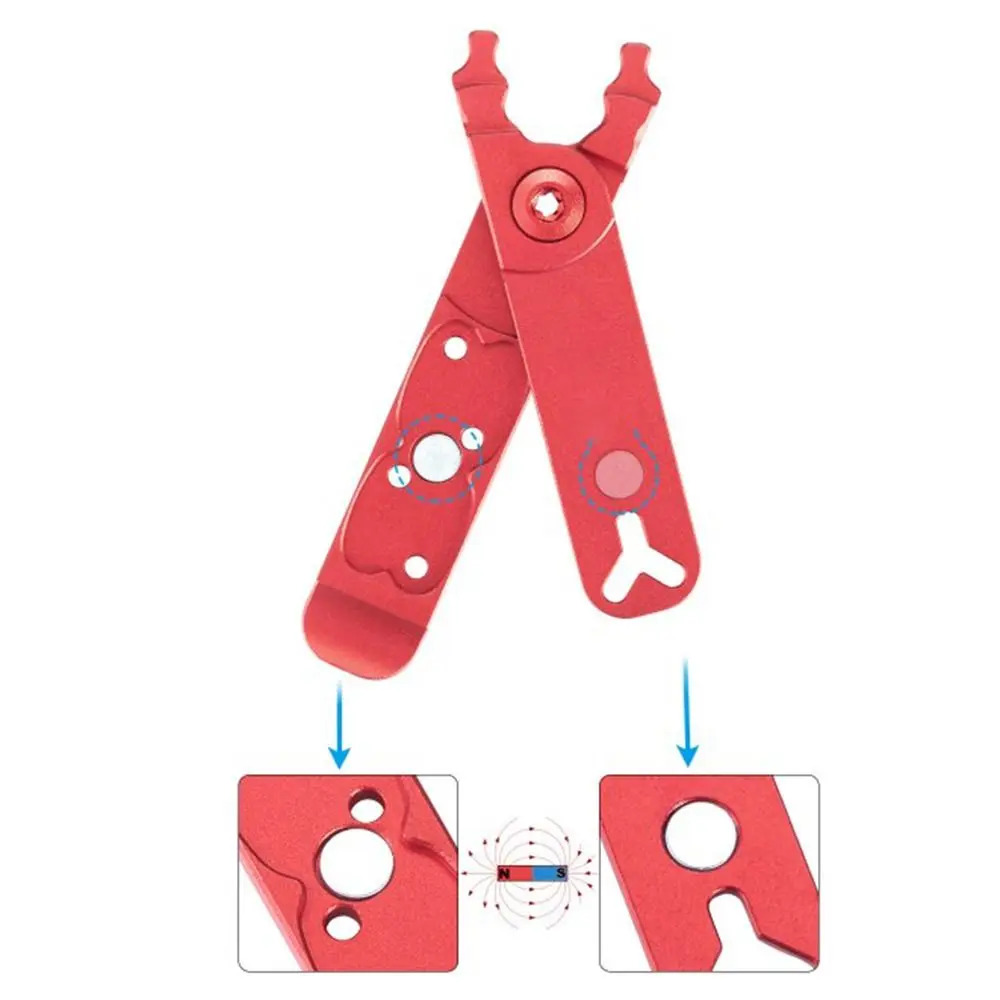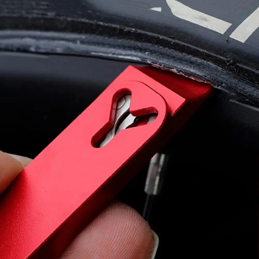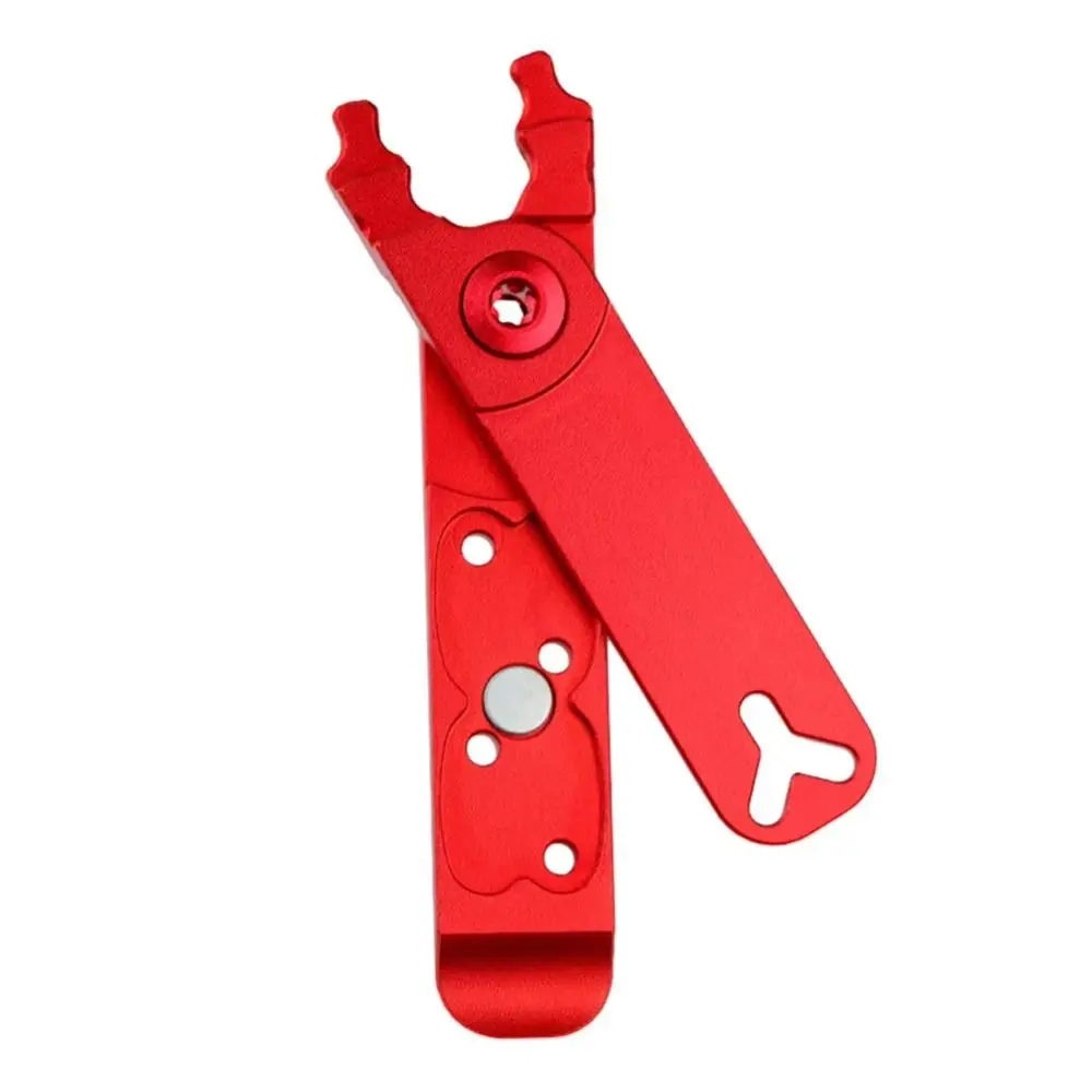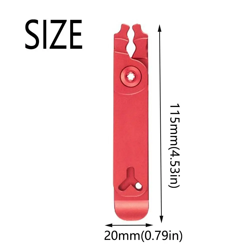 Nombre del producto: Llave de hebilla mágica multifuncional Material: aleación de aluminio Color: Negro, Rojo Tamaño: 115*20mm (4,53*0.79in) Uso del producto: motocicleta, bicicleta y otra eliminación de cadena El paquete incluye: 1 Llave de hebilla mágica multifuncional de 1. Está hecho de material de aleación de aluminio de alta resistencia, fuerte y duradero. 2. Es ligero y compacto, fácil de llevar. 3. Esta es una herramienta multifunción y proporciona algunas funciones que no se encuentran en las herramientas multifunción. 4. Tiene una palanca de neumáticos, extractor de núcleo de válvula, llave de tuerca de bloqueo de vástago de válvula y unos alicates para abrir y cerrar un eslabón maestro de cadenas. 5. También proporciona almacenamiento para dos juegos de eslabones maestros para que esté preparado en el camino. 6. Los imanes sujetan el eslabón maestro de forma segura en su lugar y cierran la herramienta.