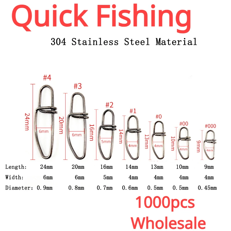 Conector de pesca de 1000 piezas, Pin de acero inoxidable, rodamiento giratorio, accesorios de conector, equipo de aparejos, venta al por mayor