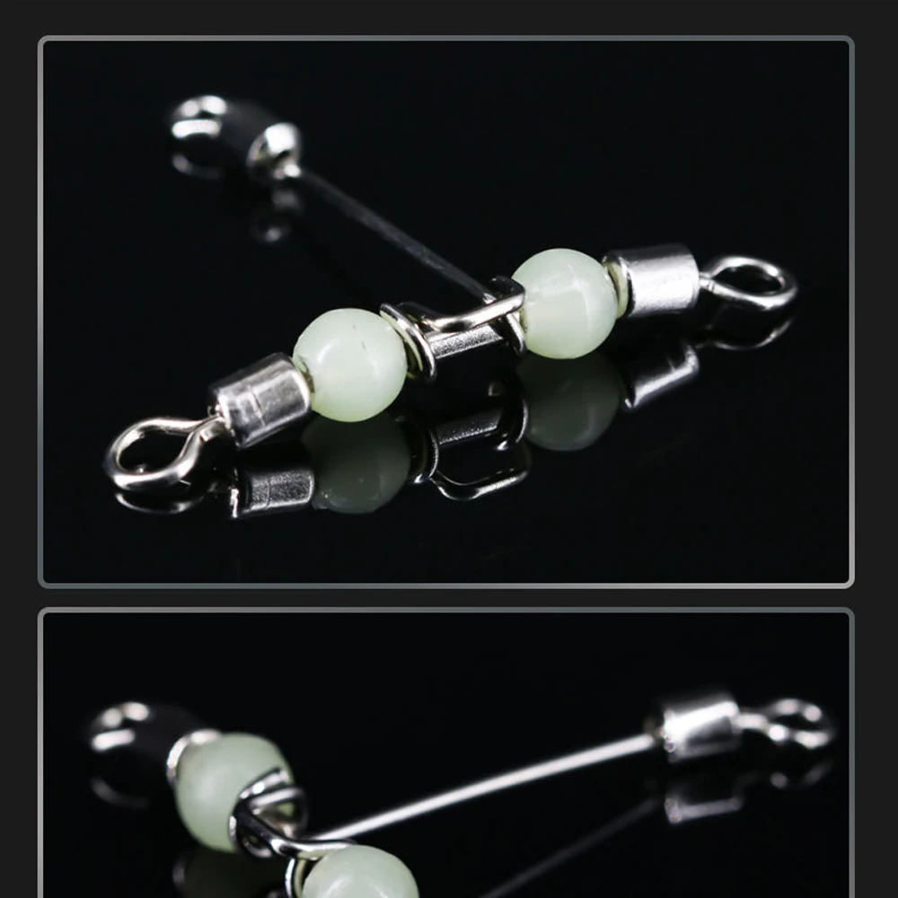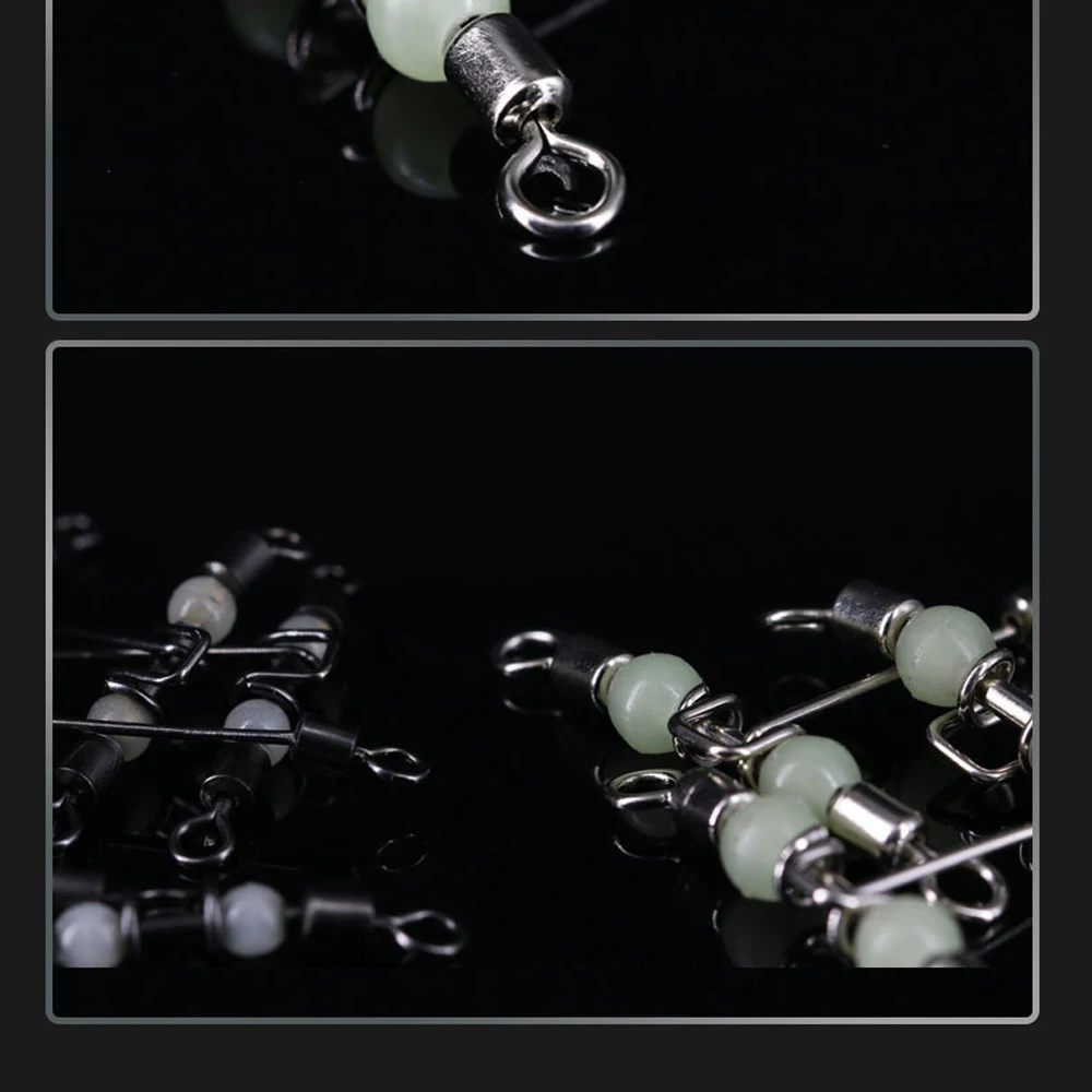 Conector de pesca de 3 vías, giratorios de línea cruzada con cuentas luminosas de perlas en forma de T, anzuelos giratorios para pesca en el mar, 10 Uds.