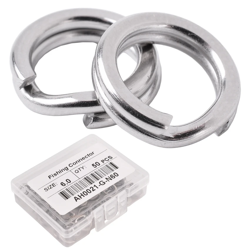 Conector de pesca de acero inoxidable 304, 50 piezas, 8 #-3 anillos giratorios, doble círculo, señuelo a presión redondo, accesorios de pesca de carpa abierta