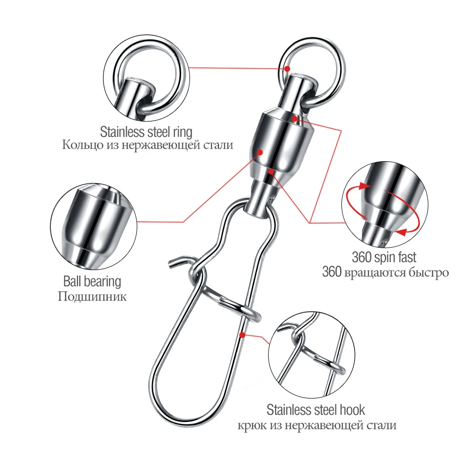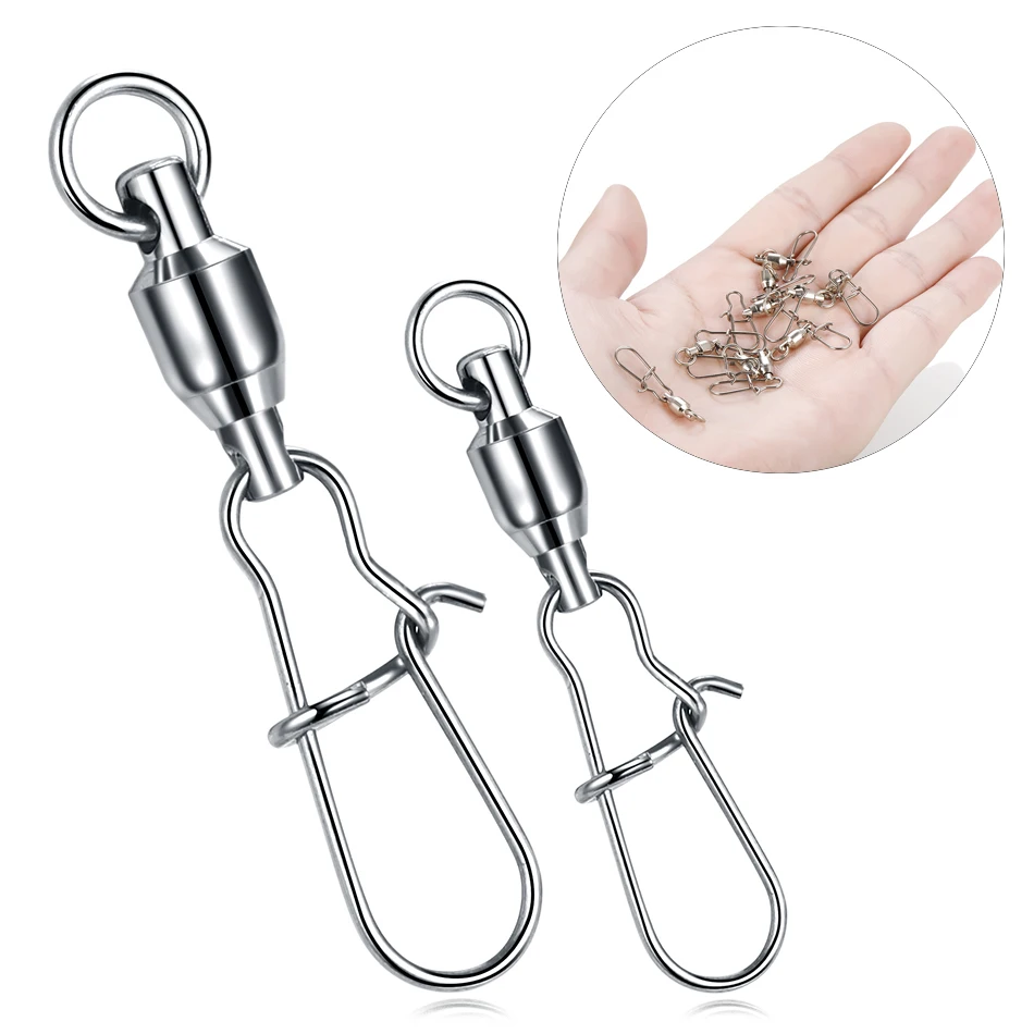 10 unids/lote conector de pesca de acero inoxidable giratorio enclavamiento rodante con rodamiento enganchado anzuelo señuelo aparejos Accesorios