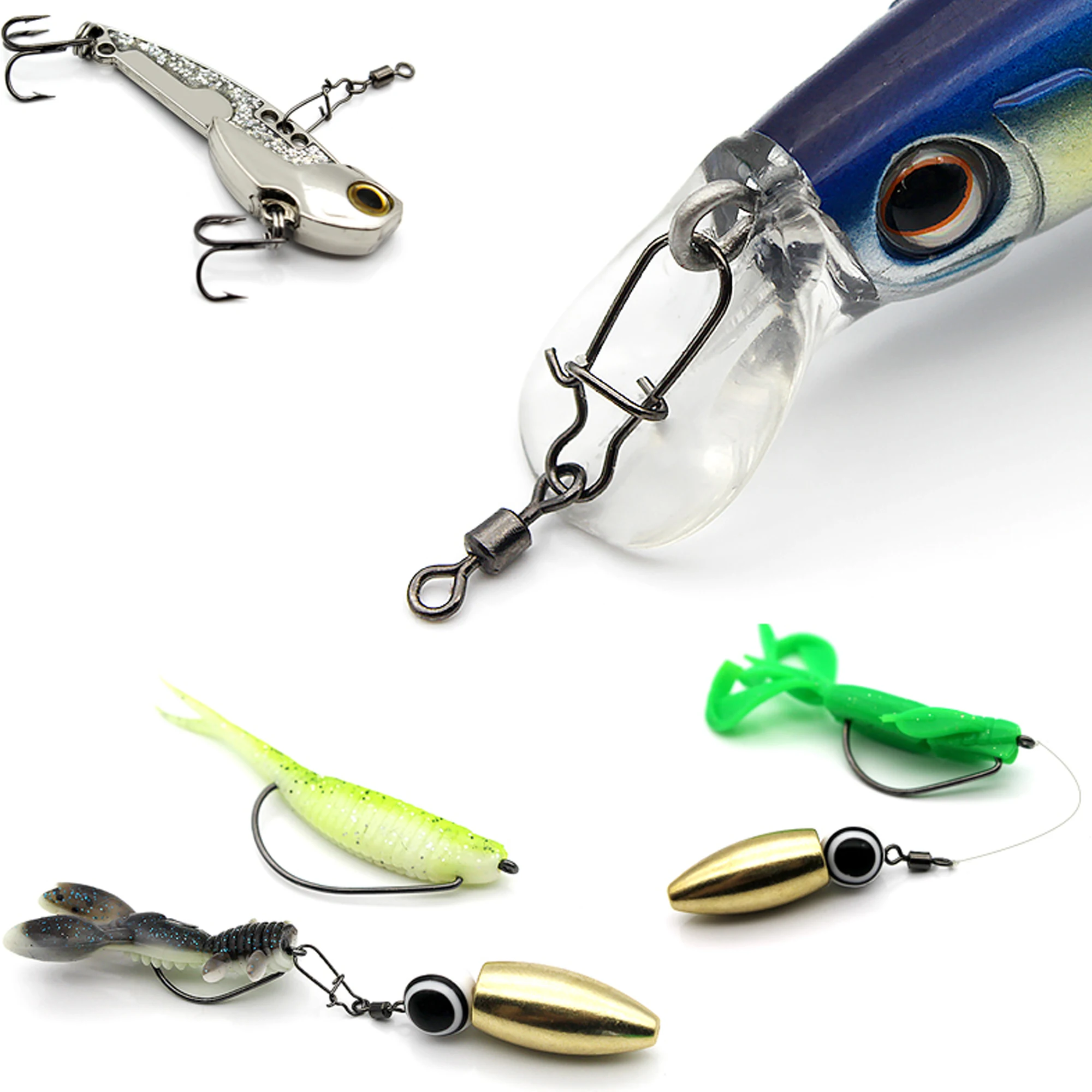 Conector de pesca de agua salada, Pin giratorio de enclavamiento, Clips de broches rápidos para Señuelos de Pesca, accesorios de aparejos de pesca, 30/20 Uds.
