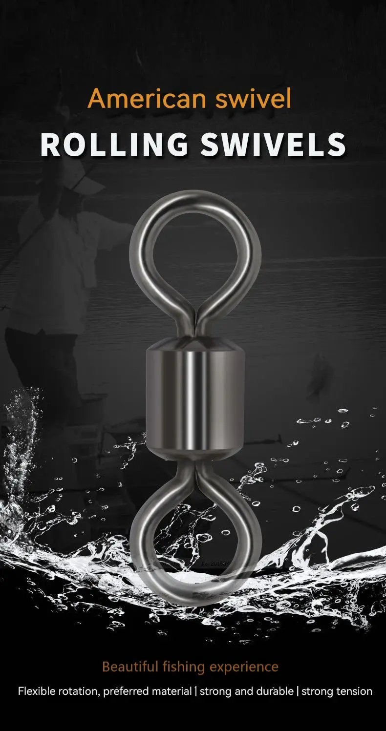 Conector de pesca giratorio de 50 piezas, anzuelo de pesca de acero inoxidable, señuelo a presión, anillo sólido, aparejos giratorios, accesorios de pesca