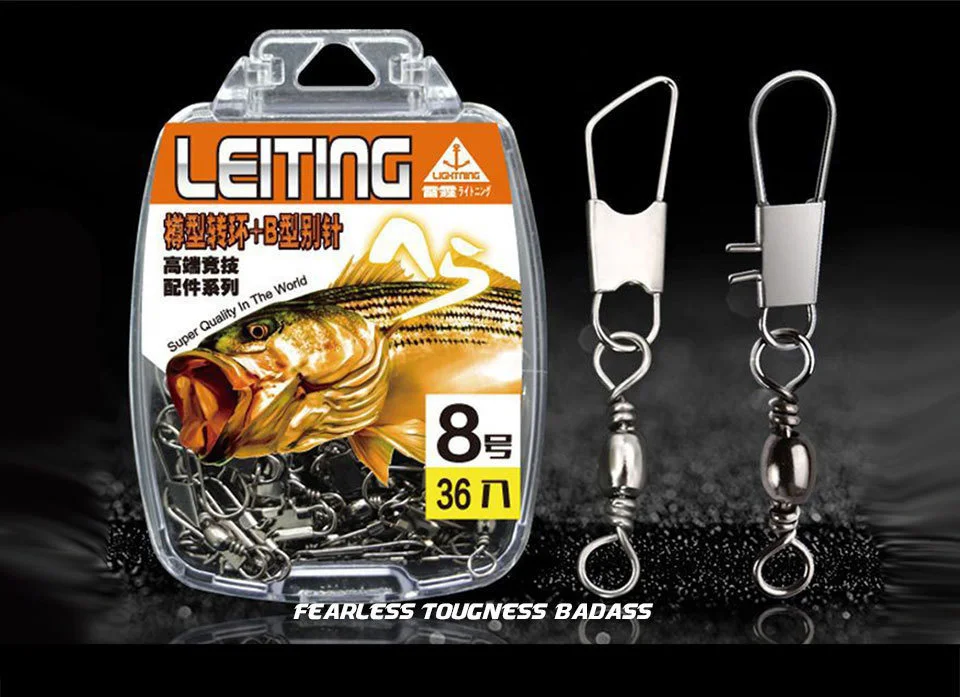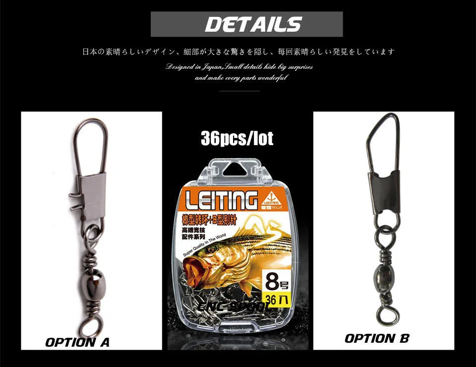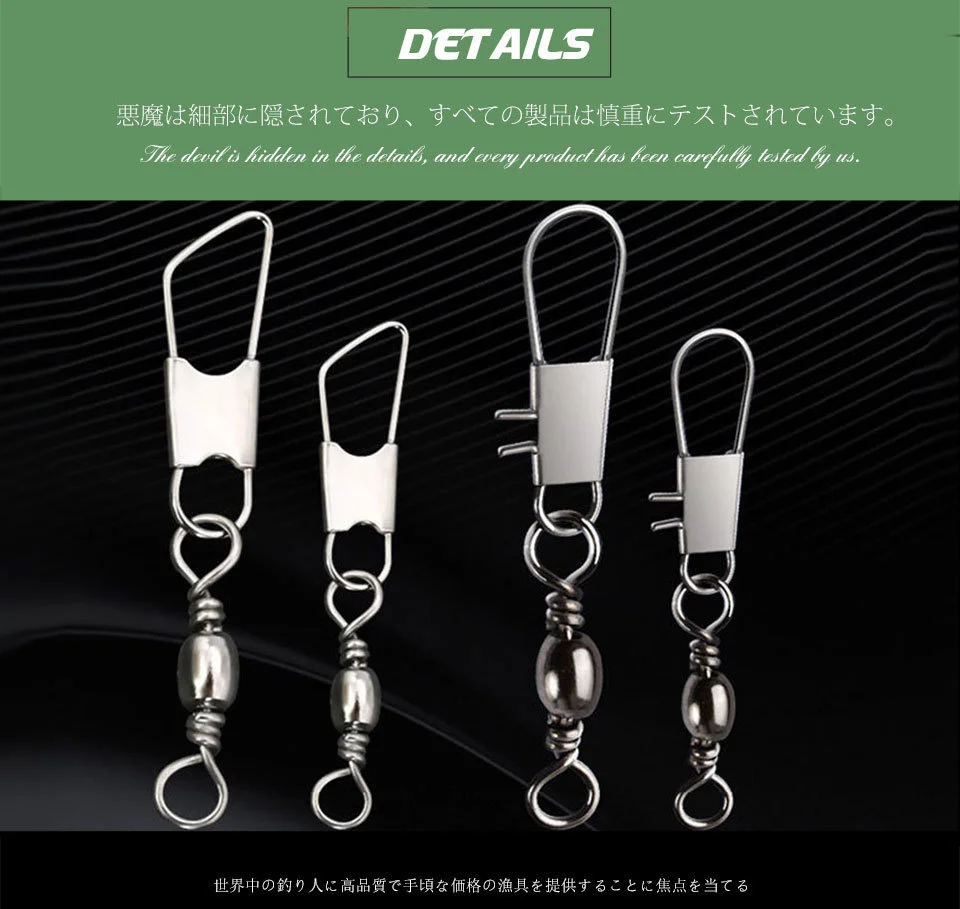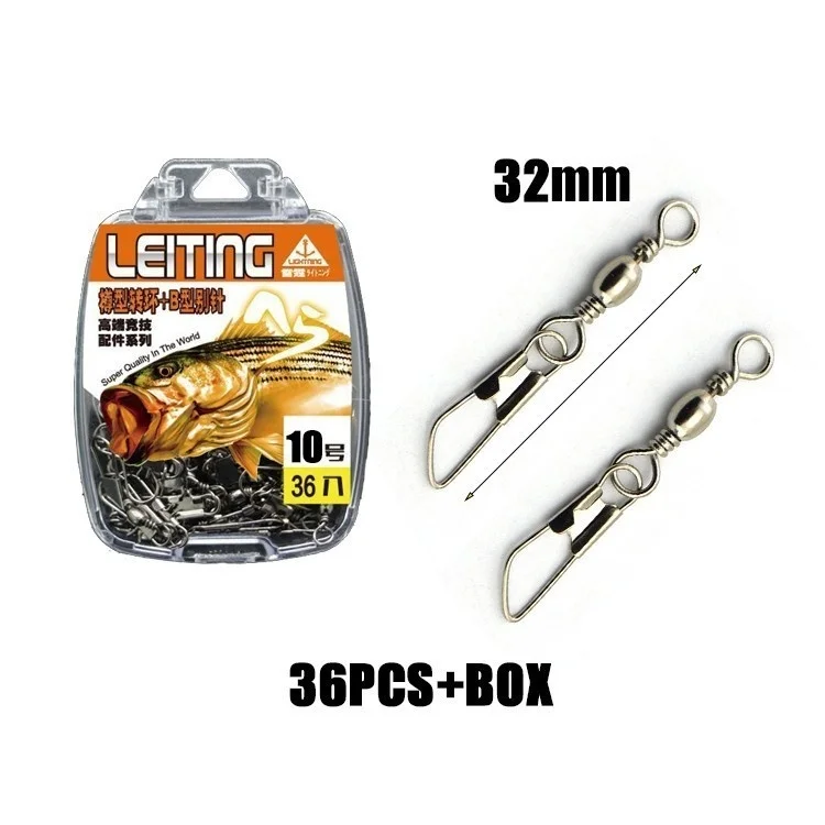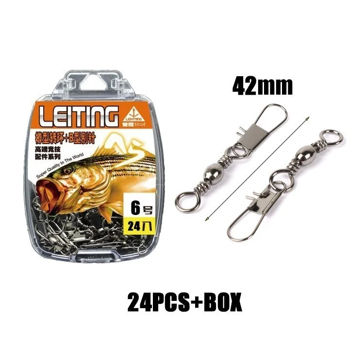 24-36 unids/lote conector de pesca Pin rodamiento giratorio de acero inoxidable Snap anzuelo señuelo giratorio aparejos accesorios con caja