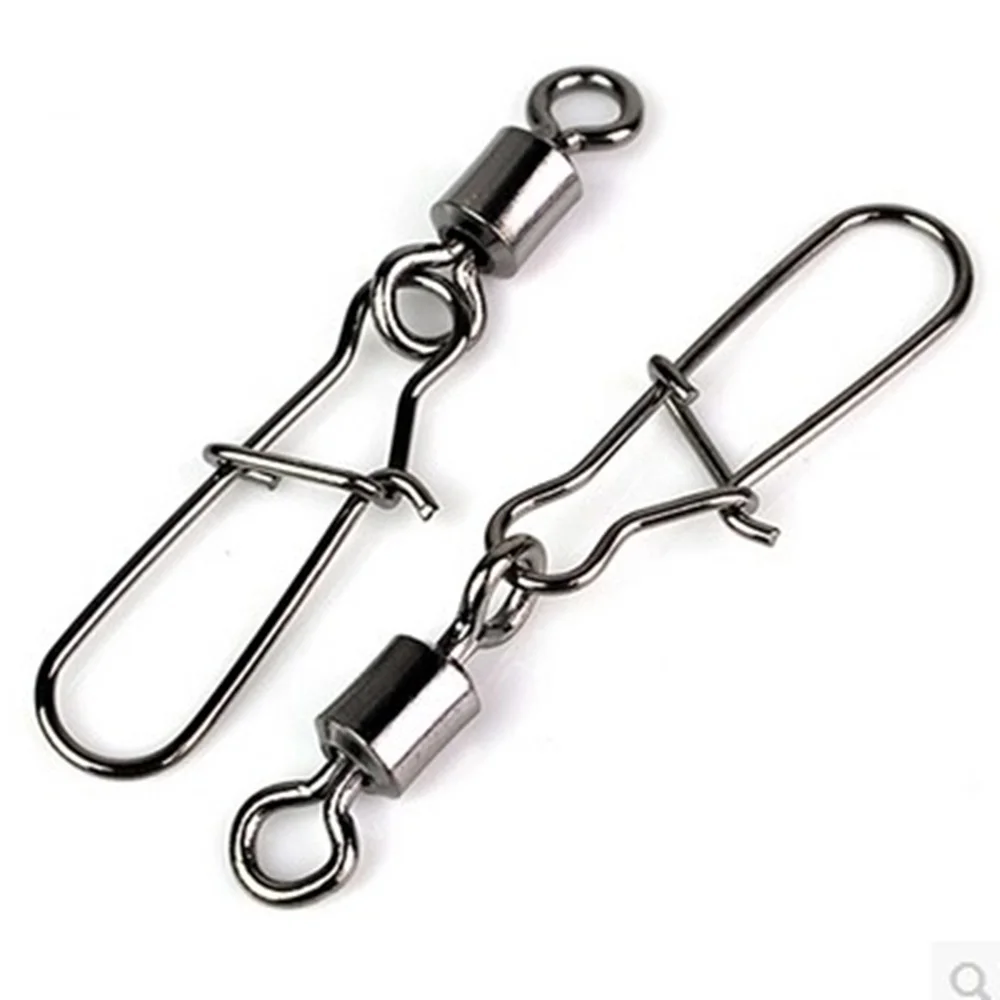10 unids/lote conector de pesca Pin rodamiento giratorio 1-12 gancho conector de señuelo pesca Acero inoxidable giratorio Snap