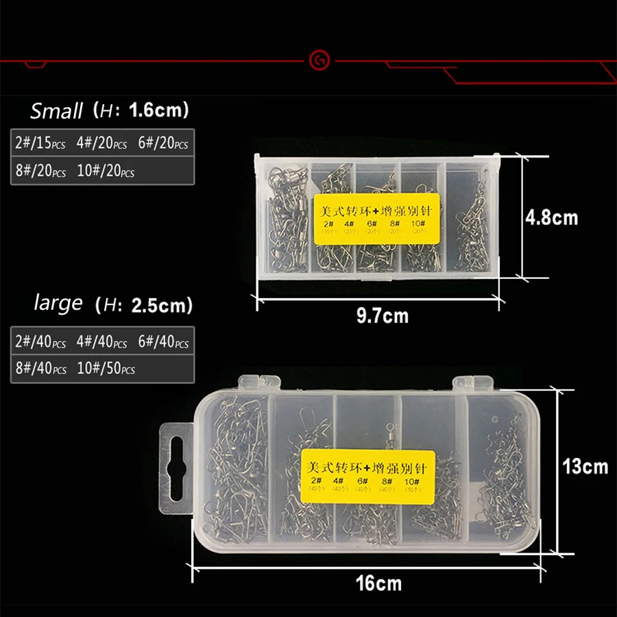 【Product size】2 # -- grande: el diámetro es de aproximadamente 4,3mm, la longitud total es de aproximadamente 16mm, la fuerza de tracción es de aproximadamente 40 kg4 # -- grande: el diámetro es de aproximadamente 4mm, la longitud total es de aproximadamente 15mm, la fuerza de tracción es de aproximadamente 35 kg6 # -- tamaño mediano: aproximadamente 3mm de diámetro, aproximadamente 12mm de longitud total, fuerza de tracción de aproximadamente: 30 kg8 # -- medio: aproximadamente 2,5mm de diámetro, aproximadamente 10mm de longitud total, fuerza de tracción: 19 kg10 # -- pequeño: el diámetro es de aproximadamente 2,3mm, la longitud total es de aproximadamente 9mm, la fuerza de tracción es de aproximadamente 14 kg