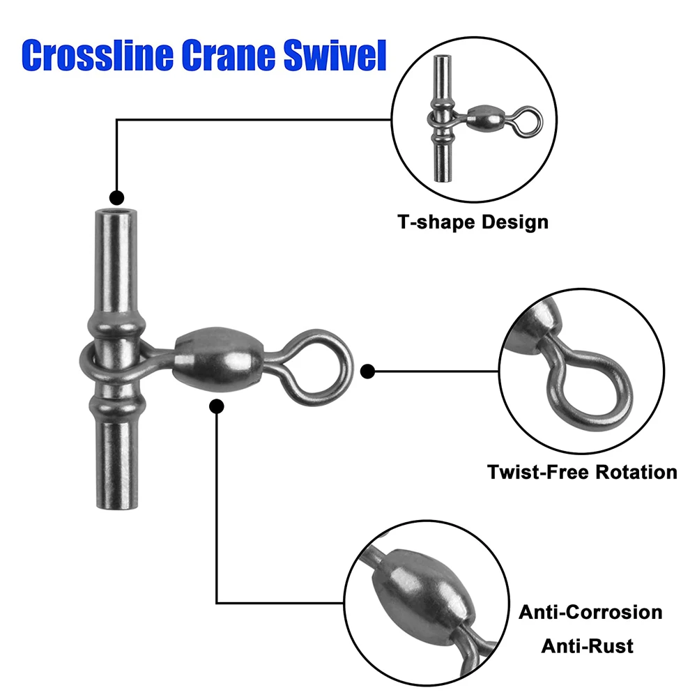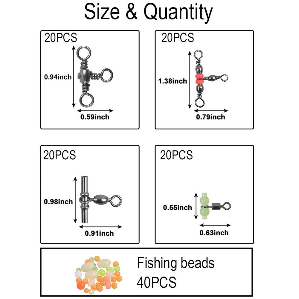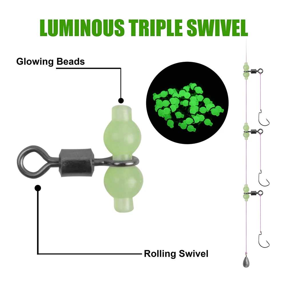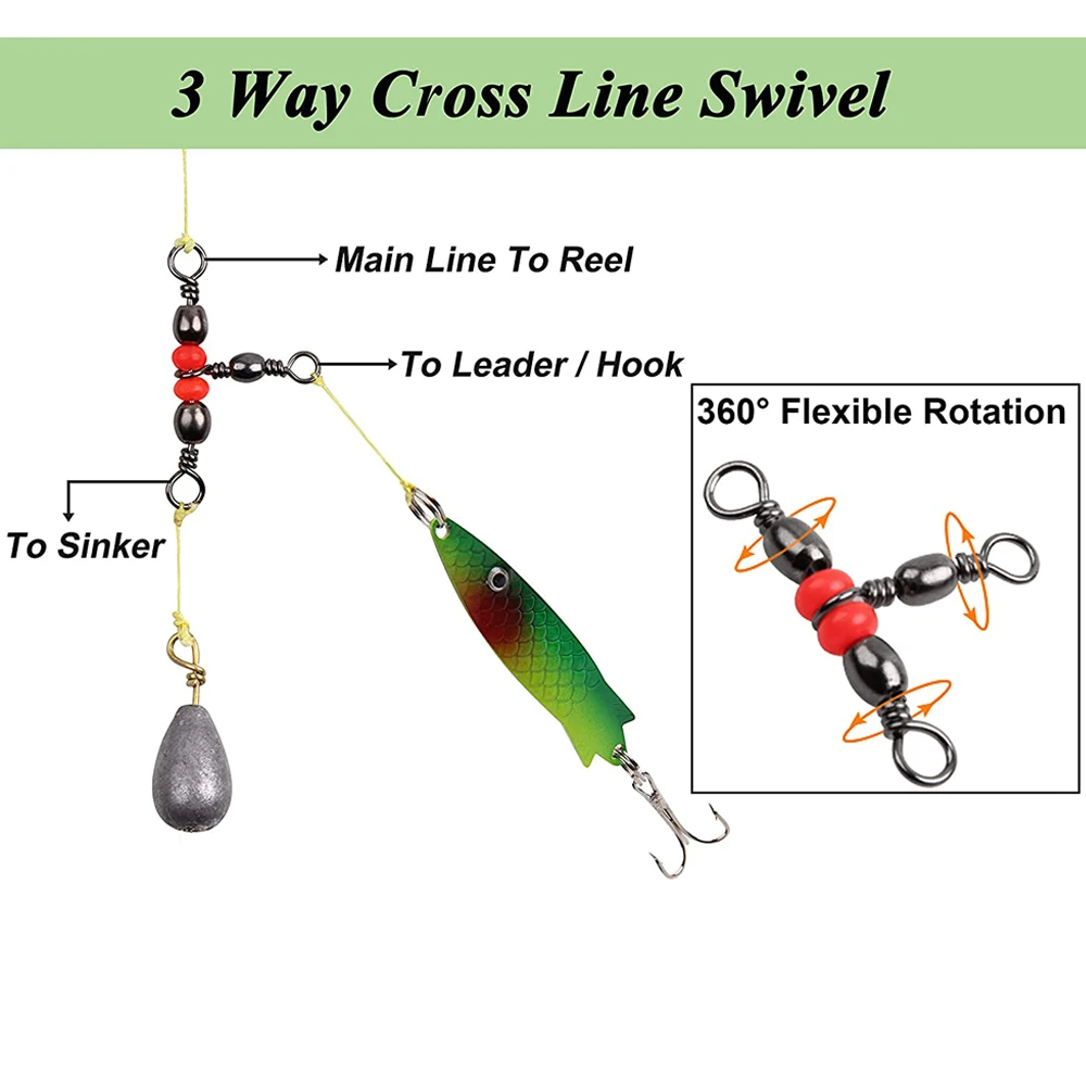 Conectores giratorios de 3 vías para pesca, aparejo de Gancho de cuerda, accesorios para aparejos de pesca, 120 Uds.