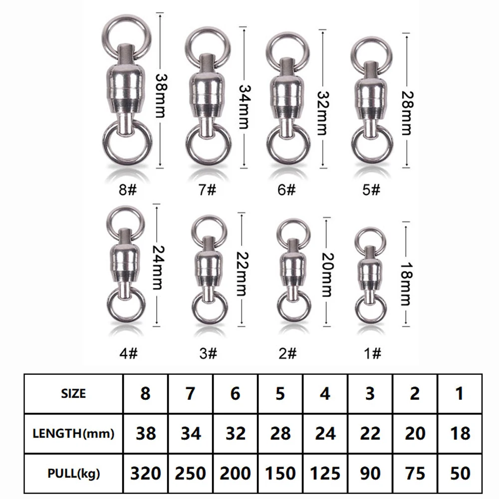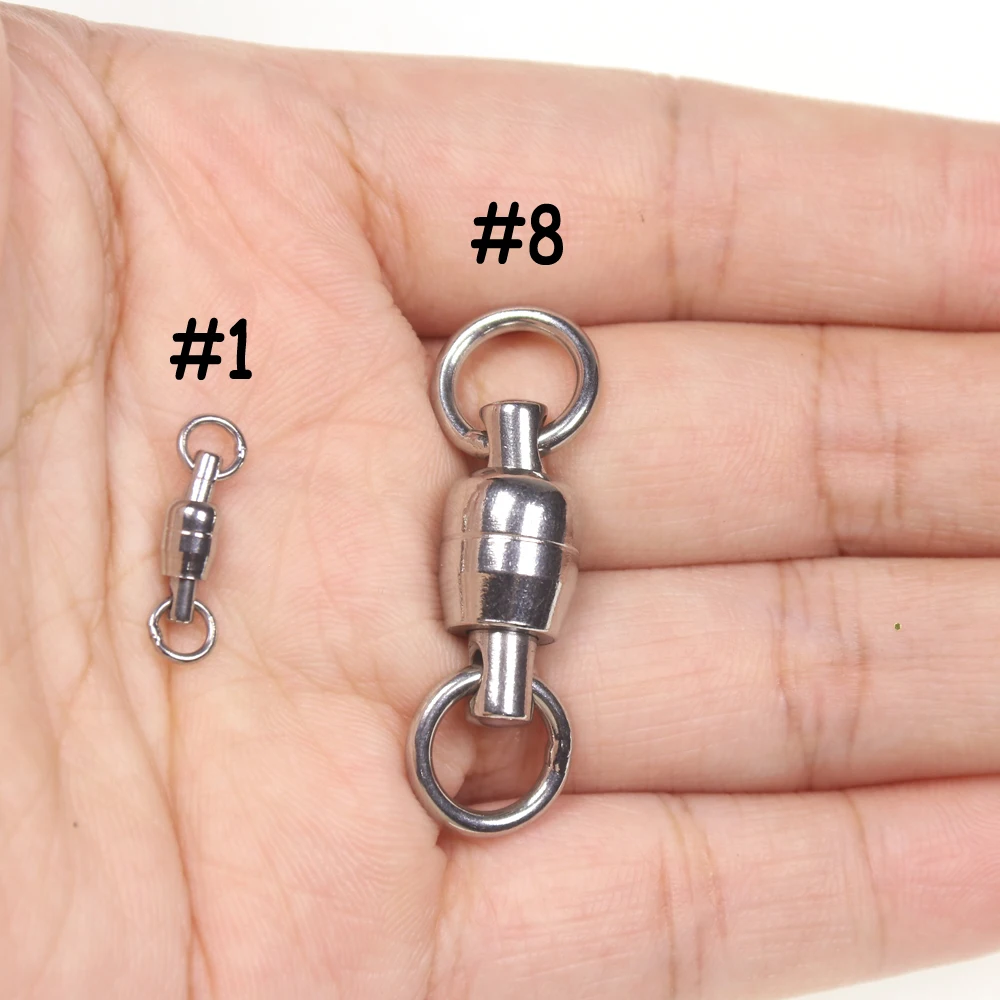 Giratorio de doble rodamiento de bolas de alta resistencia de acero inoxidable de 3 uds con conector de aparejo de pesca de agua salada de anillo sólido