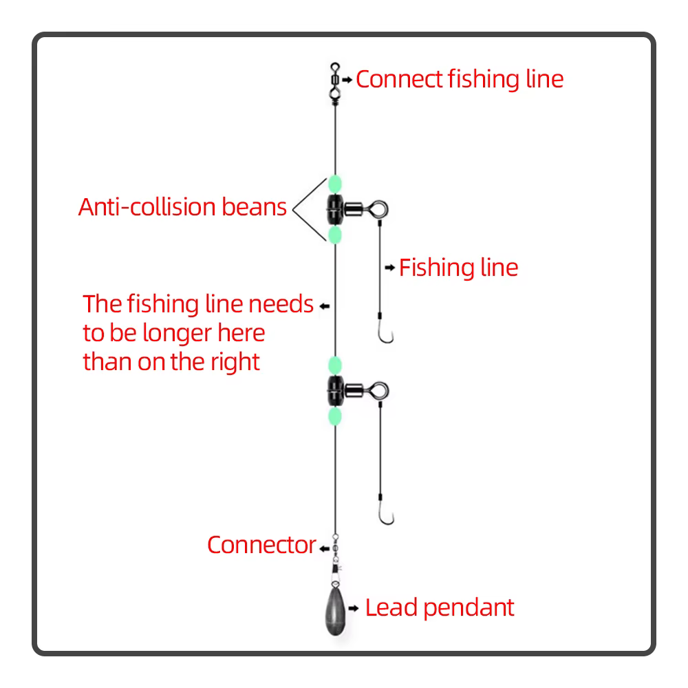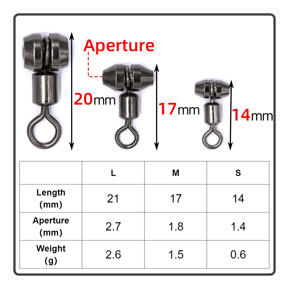 2. Rotación multidireccional de 360 ° sin dañar la línea, y la línea de pesca no se enredará ni anudará. Permite utilizar múltiples anzuelos en una línea de pesca principal al mismo tiempo.