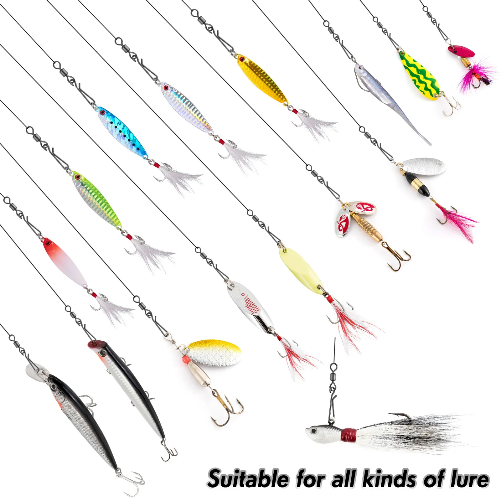 PREPARADO EN SEGUNDOS.Diseño de apertura rápida, fácil de usar. Conéctese al sedal y a los señuelos en segundos. Lo más importante es que tampoco afecta la acción de Ningún señuelo, y puede quitar y encender los señuelos con facilidad