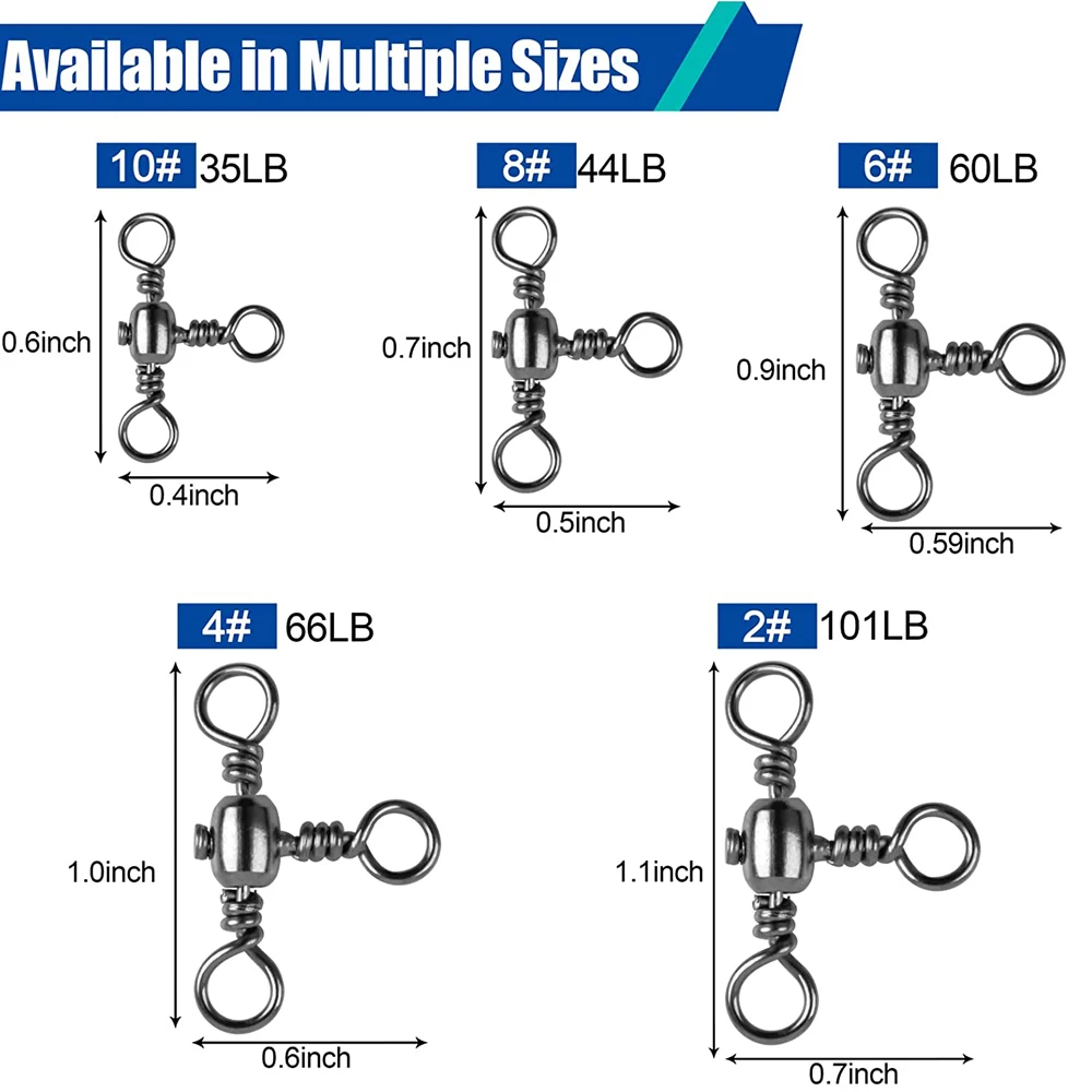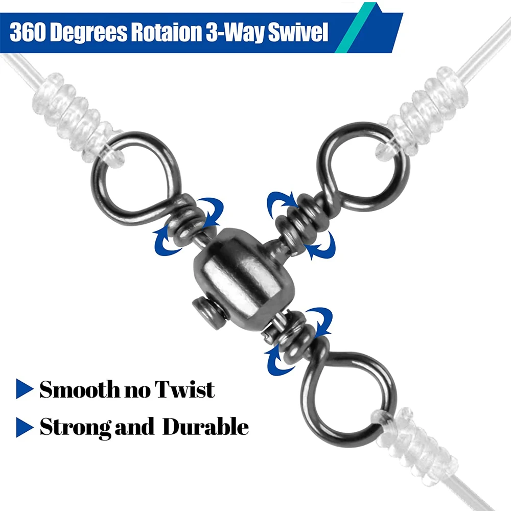 Barril giratorio de línea cruzada de 3 vías, Conector de señuelo de pesca giratorio en T, accesorios para aparejos de pesca