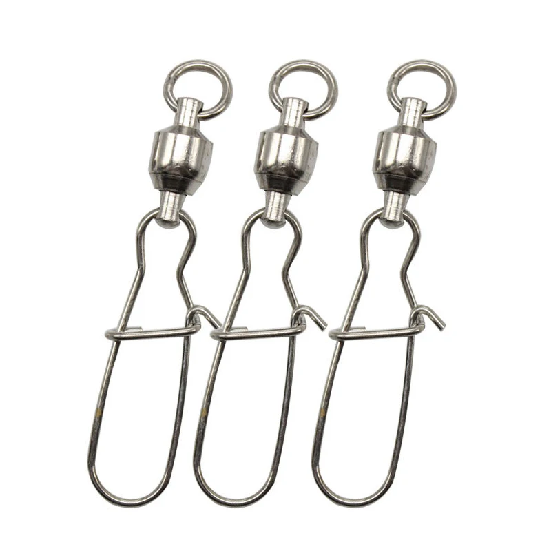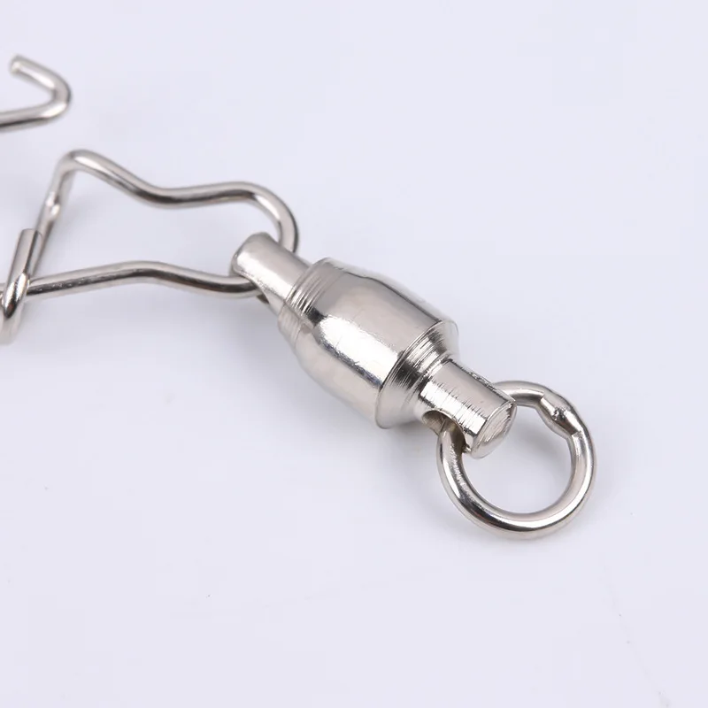 Conectores giratorios de aleación de acero y cobre, accesorios de aparejos de Pesca, color blanco y plateado, venta al por mayor